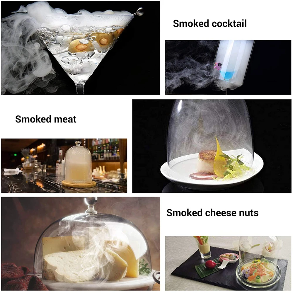 Подходит для рыбы, морепродуктов, молекулярной кухни, коктейлей, ореховых закусок и т. д. Курительная пушка быстро использует различные виды опилок, чая, трав, специй, сена и сухоцветов для дыма.