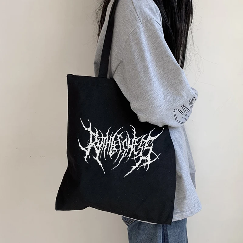 Японская темная сумка-шоппер, Холщовая Сумка y2k с готическими волн...