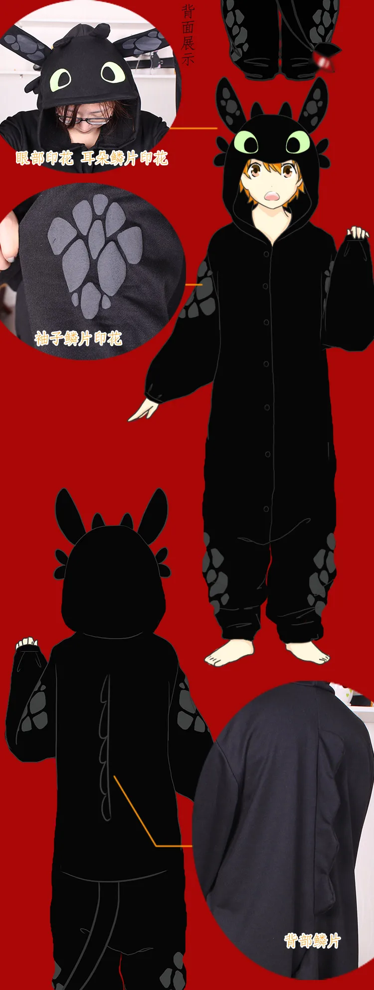 Пижама-комбинезон унисекс фланелевая с драконом без зубцов и надписью Your Night Fury