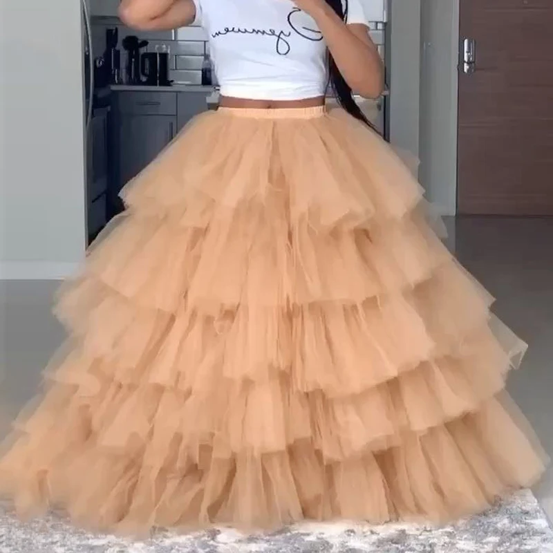 Пышные тюлевые юбки для женщин, многоярусная пышная сетчатая длинная юбка цвета шампанского в пол для выпускного вечера, вечерние платья, пошив на заказ