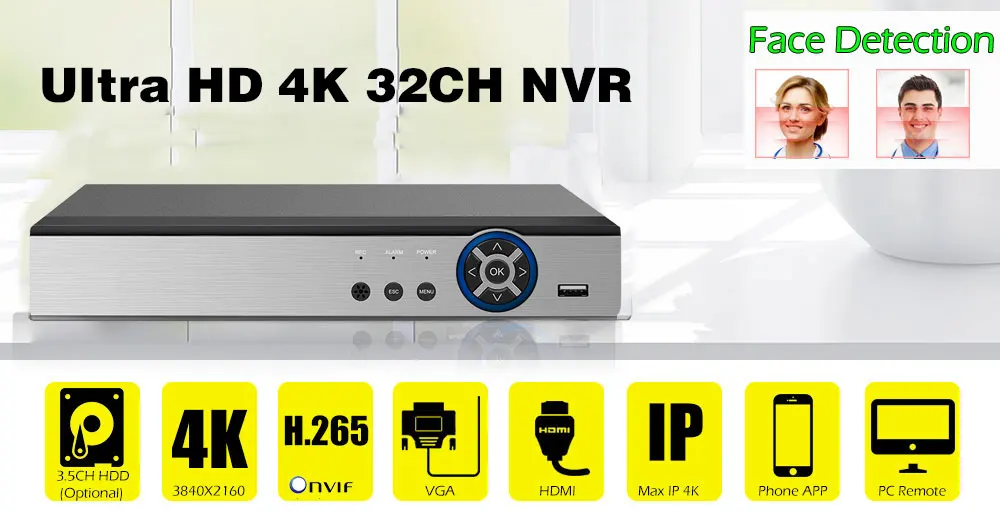 16CH NVR ResolutionH.265 32CH 4K NVR