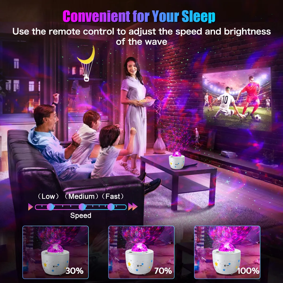 Особенности: Bluetooth Музыка Звездное небо Проектор светильник Стильные Звездные небесные огни с ней, вы можете наслаждаться вечерние дома с друзьями и семьей в любое время, или вы можете предоставить вашему ребенку красивую спальню со звездами, светодиодный фонарь с голосовым управлением Или мигает с ритмом музыки или хлопает Космический светильник с несколькими проекционными эффектами Водяной знак, один цвет, смешанный цвет; Звезда водяной знак, звезда, один цвет и смешанный цвет Дети могут бродить по Вселенной с помощью лазерного проектора со звездами и облаками. Новейший лазерный проектор-простой в использовании Ночной светильник с сенсорным управлением может изменить цвет, может быть постепенным, может переключаться в соответствии с сценой Регулируемый угол проекционной лампы может регулировать угол светильник под любым углом, так что Ночной светильник может быть проецирован на стену, потолок, пол и все положения комнаты. Кнопка дистанционного управления: 1. Функция голосового управления: при получении Bluetooth для воспроизведения внешней музыки (эффект тяжелого баса DJ более очевиден) Светодиодный лазер для сцены проекции и светодиодный индикатор будут следить за музыкой и ритмом. 2. Регулировка яркости, Рисунок воды, звезды, все можно регулировать; 3. Регулировка времени: режим потока воды и звезда могут быть переключены при 1 ч/2 ч/4 ч времени; 4. Регулировка скорости: скорость водной линии и мигающая скорость звезд могут быть свободно отрегулированы в соответствии с сценой. 5. Переключение режима: полный цвет, монохромный, смешанный цвет, голосовое управление и другие режимы могут быть созданы для создания хорошей атмосферы. 6. При воспроизведении bluetooth-динамика нажмите на предыдущую песню (Длительное нажатие громкости +)/Короткое нажатие на следующую песню (Длительное нажатие громкости-), пауза/воспроизведение, USB и Bluetooth можно переключать, оба имеют приоритет USB выше, чем Bluetooth, Спецификация: Входное напряжение: 5 В/1,5 А постоянного тока Максимальная мощность RGBW светодиодный Ночной светильник: 7,5 W Красный светильник (620-625nm), зеленый светильник (520-525nm), синий светильник (460-465nm), зеленый светильник длиной волны: 532nm Уровень безопасности: Уровень 1 Материал: АБС-пластик Источник проекционного светильник: светодиодный Расстояние проекции: 2-10 ㎡ Затененная область: Расстояние 5 м: 20 квадратных метров Расстояние 8 м: 80 квадратных метров Упаковочный лист: 1 * Bluetooth музыка комбо Звездный светильник 1 * USB кабель 1 * Руководство пользователя 1 * пульт дистанционного управления