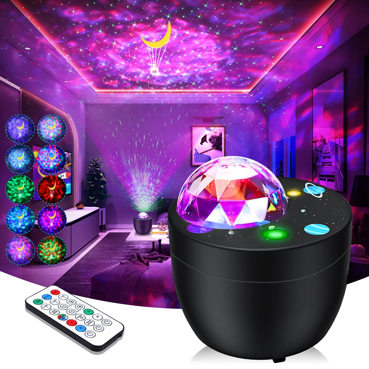 Светодиодный проектор Galaxy, ночник, водная волна, звездное небо, Звездный проектор, USB, голосовое управление, музыкальный проигрыватель, светодиодная лампа Galaxy