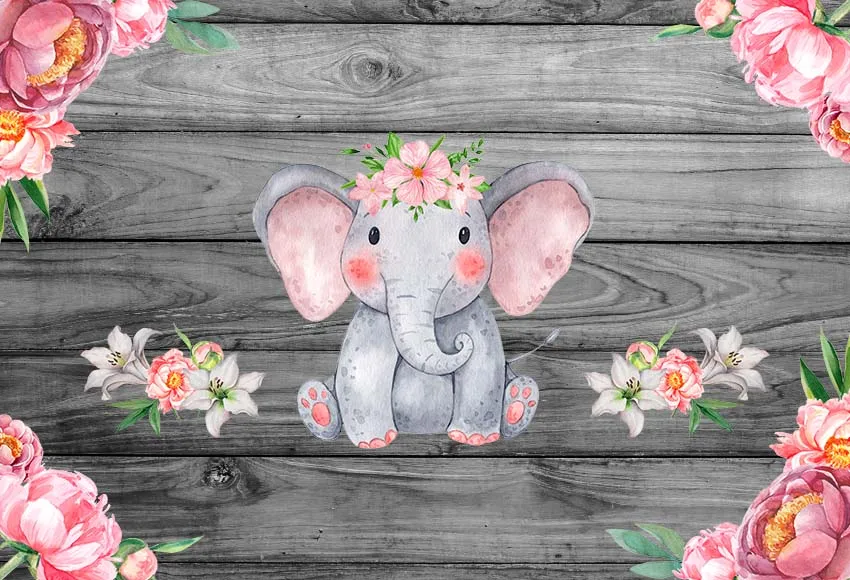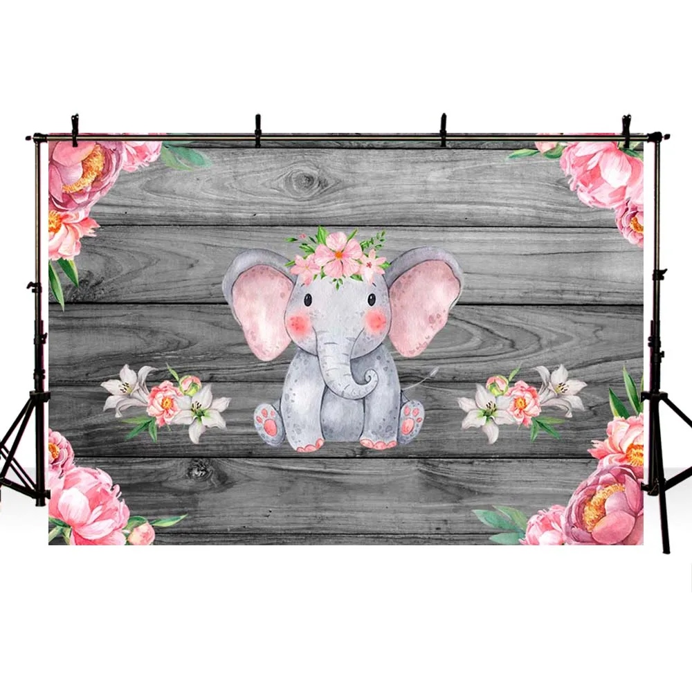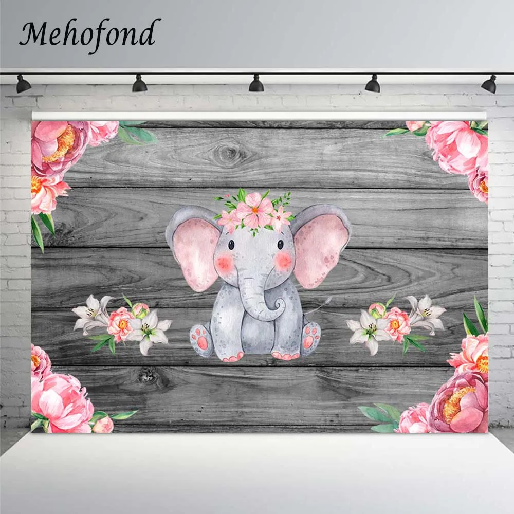 Фон для фотосъемки с изображением слона Mehofond серая деревянная доска розовый цветок девочка ребенок душ День Рождения Декор Фото фоны фотозона