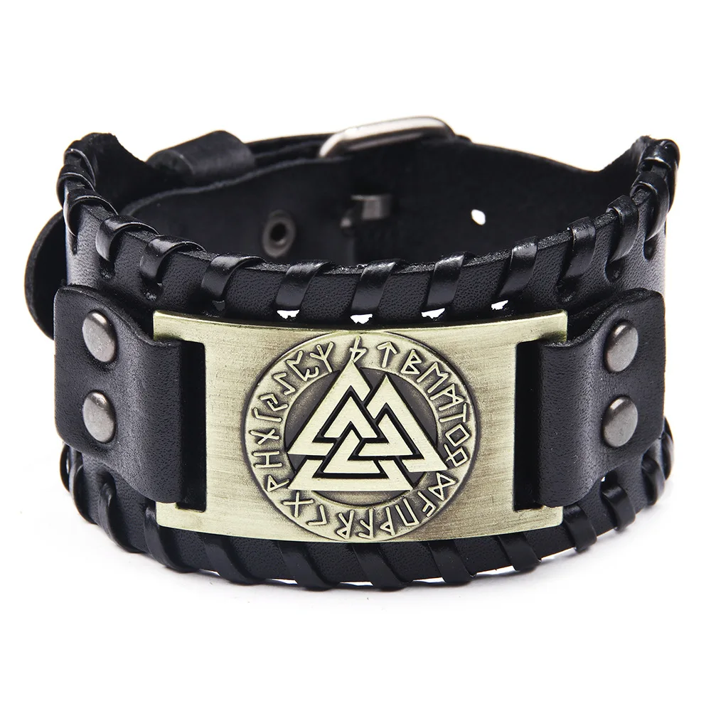 Руна викингов браслет мужской широкий кожаный браслет Браслет-манже...