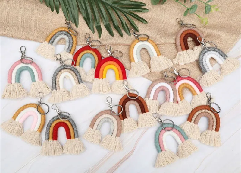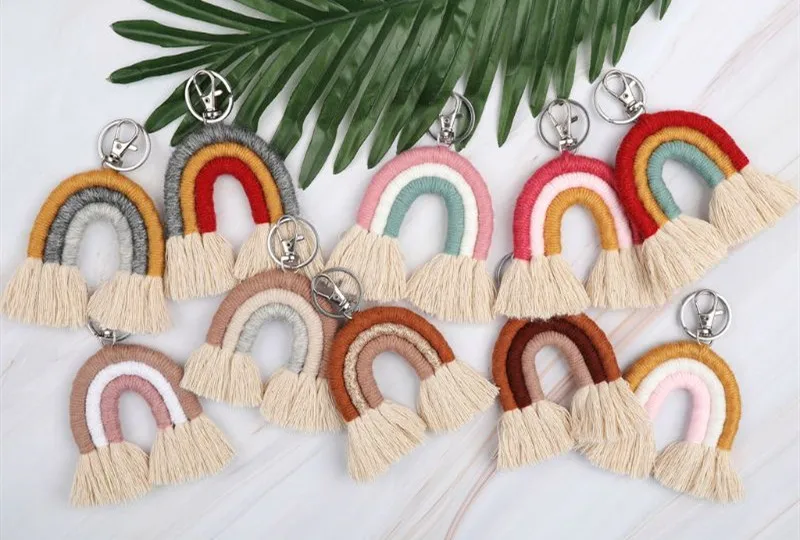 OOTDTY плетения радужные Кисточки Брелок Бохо ручной работы брелок с кисточкой для женщин сумка очарование кулон ювелирные изделия держатель для ключей