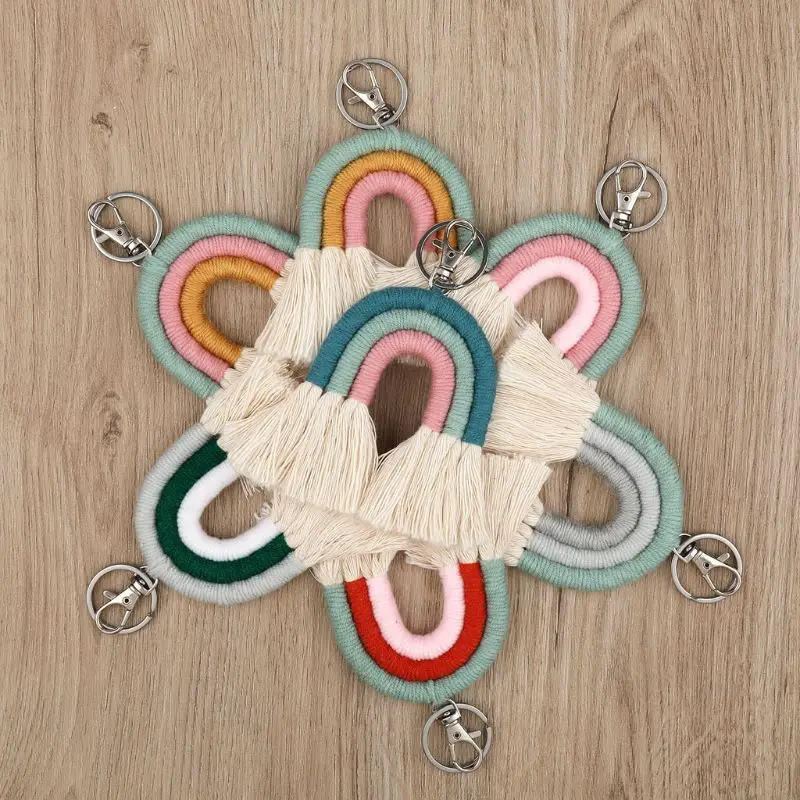 Процесс: с использованием разноцветных хлопковых канатов, ручной работы в радужные брелки.