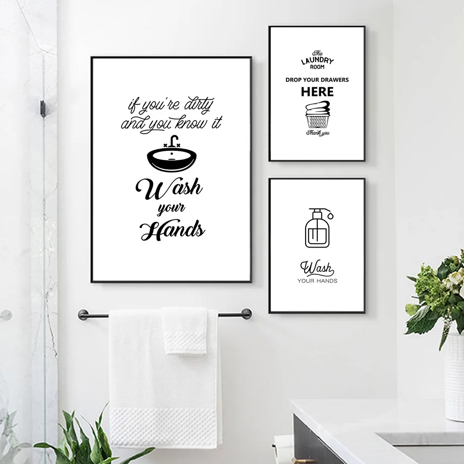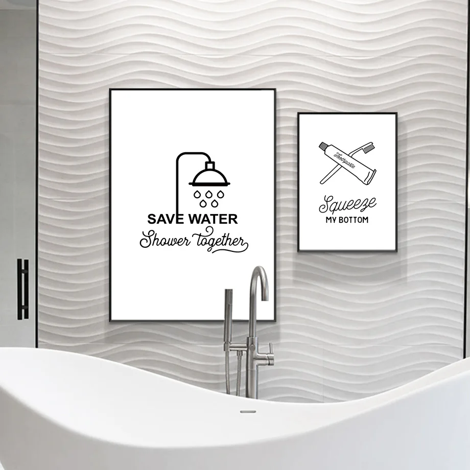Настенная Картина на холсте в ванную комнату, черно-белый плакат, т...
