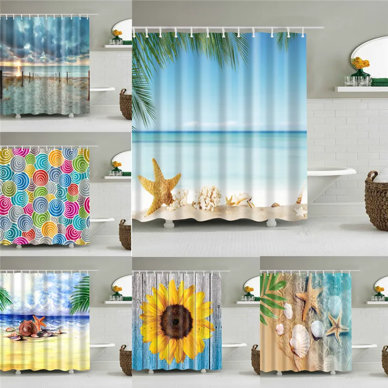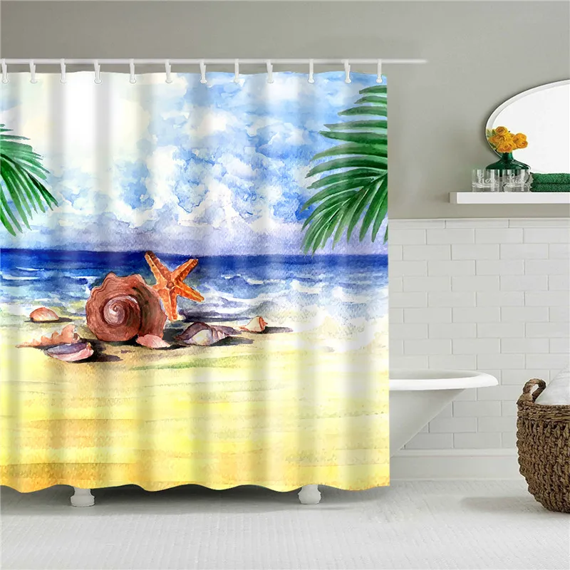 Занавеска для душа, водонепроницаемая, с принтом, для пляжа, с 10 к...