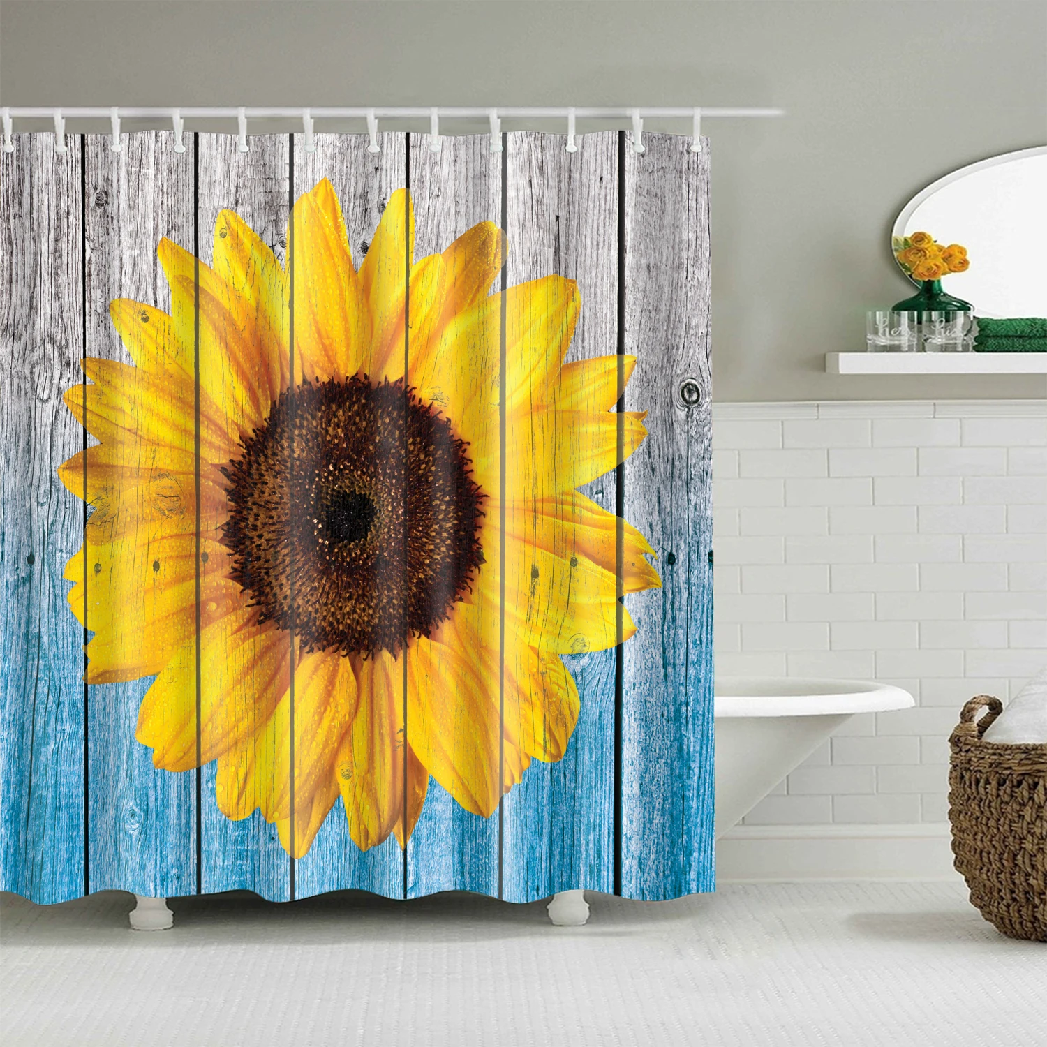 Красивая занавеска для душа из полиэстера с изображением подсолнухо...