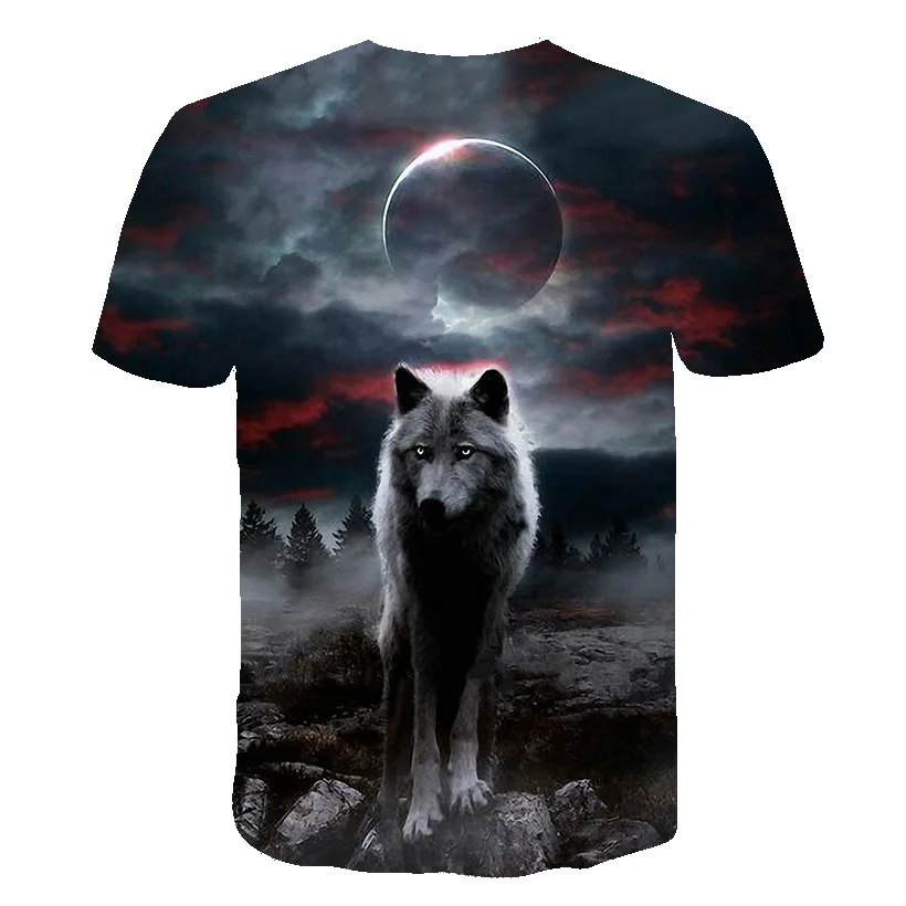 Футболки с 3d-рисунком волка для мужчин и женщин, летняя индивидуал...