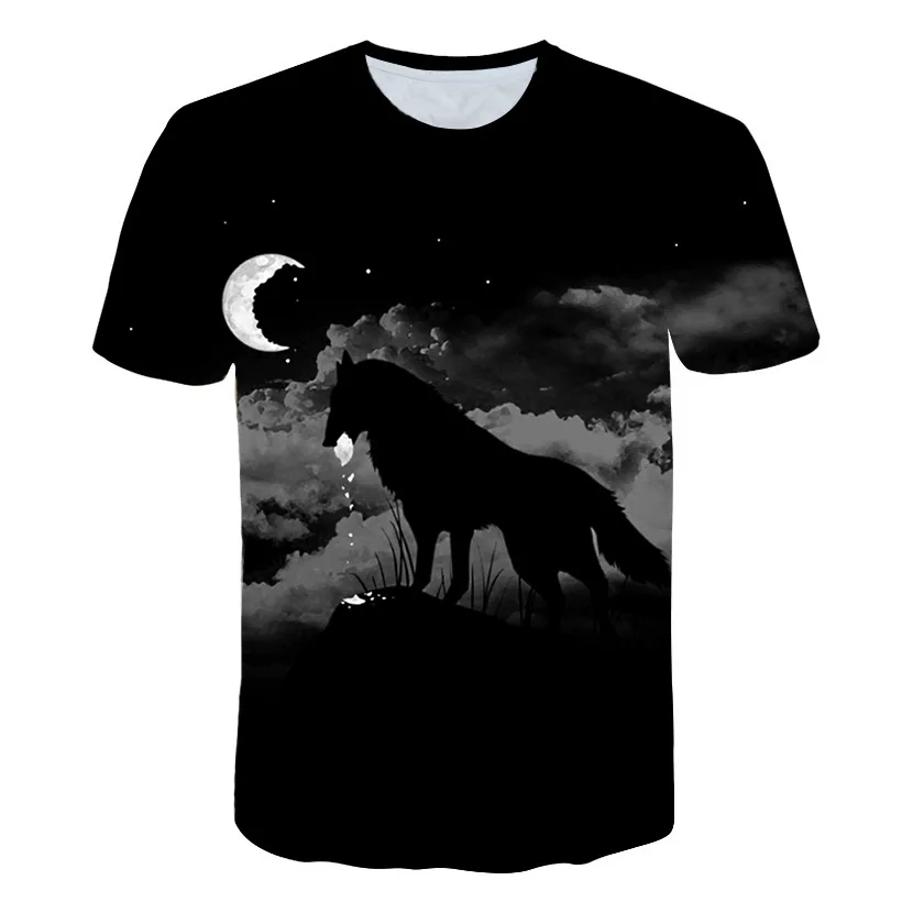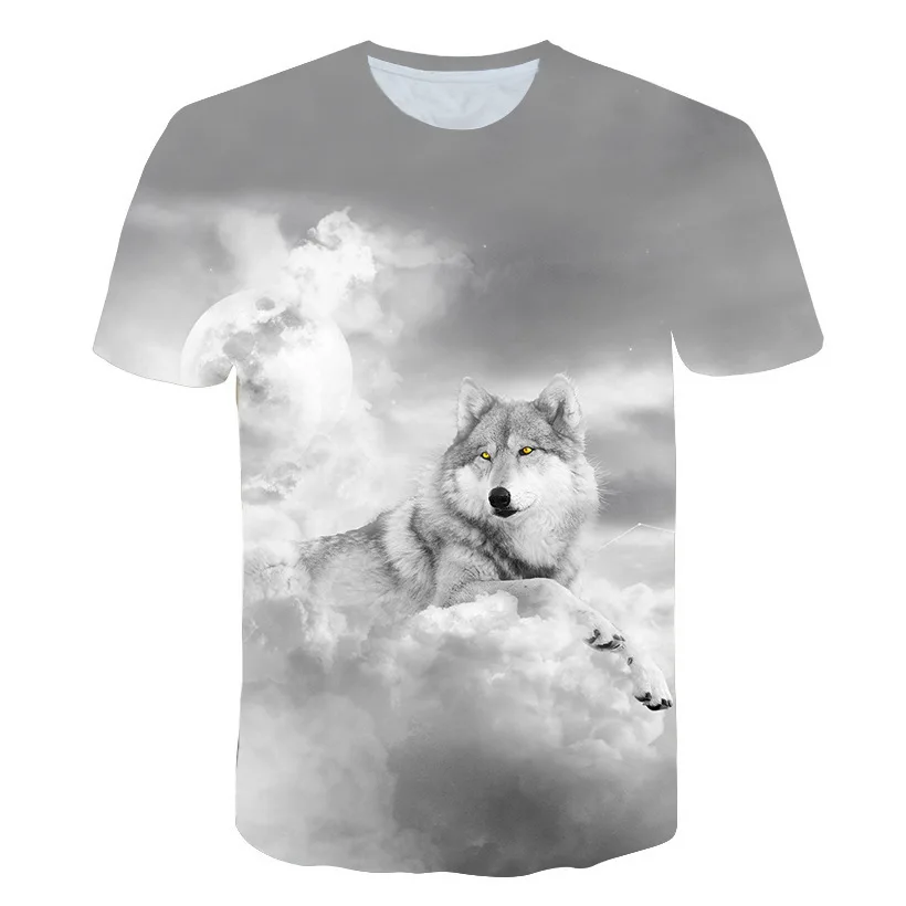 Футболка Мужскаяженская летняя с 3D-принтом волка, классный топ с г...