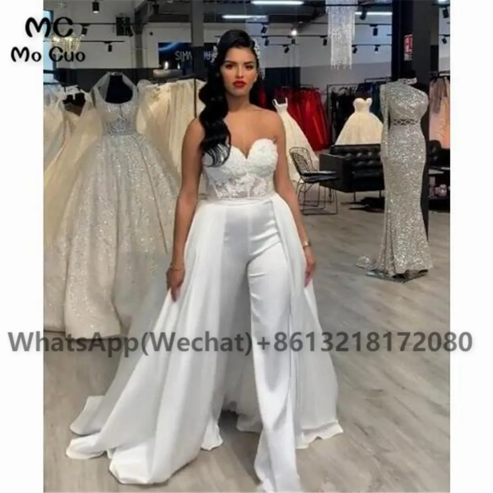 Женский Свадебный комбинезон со шлейфом, белое кружевное платье-трапеция с аппликацией, лето 2021