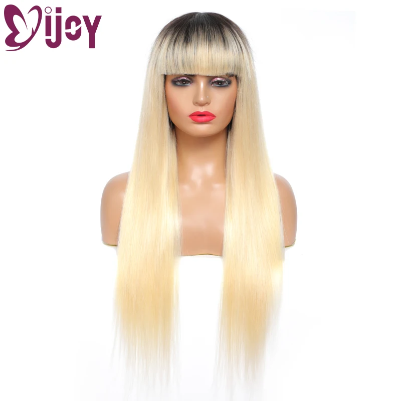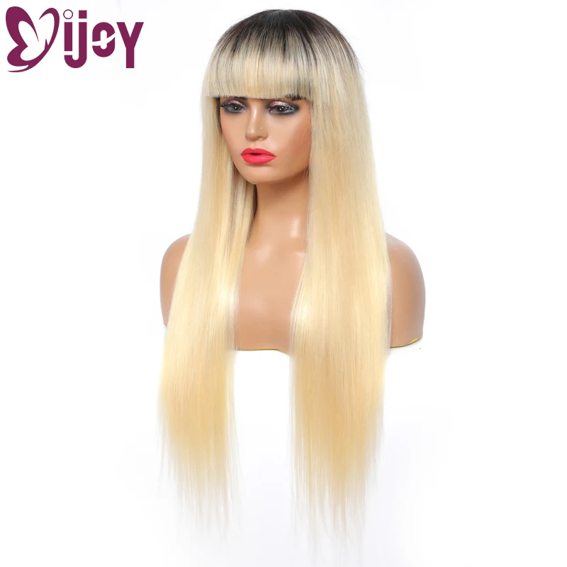 1B 613 блонд бразильские прямые человеческие хиар парики с челкой IJOY полный парик машинной работы для женщин бразильские Remy человеческие волосы парик