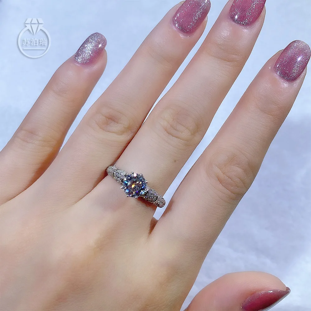 Кольцо из муассанита в стиле ретро, размер 6,5 мм, 1CT, цвет, синий, розовый, желтый, зеленый, голубой, не регулируемый, S925, серебряные бриллианты, обручальные кольца