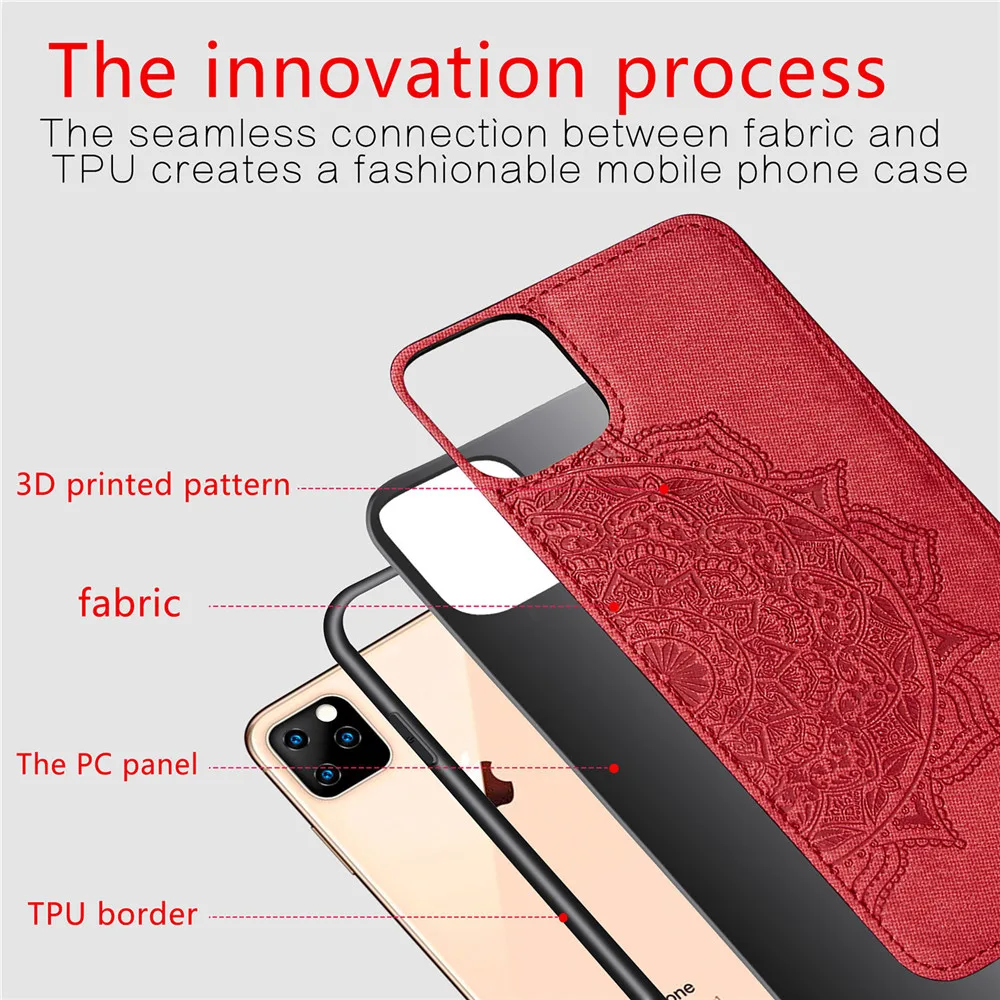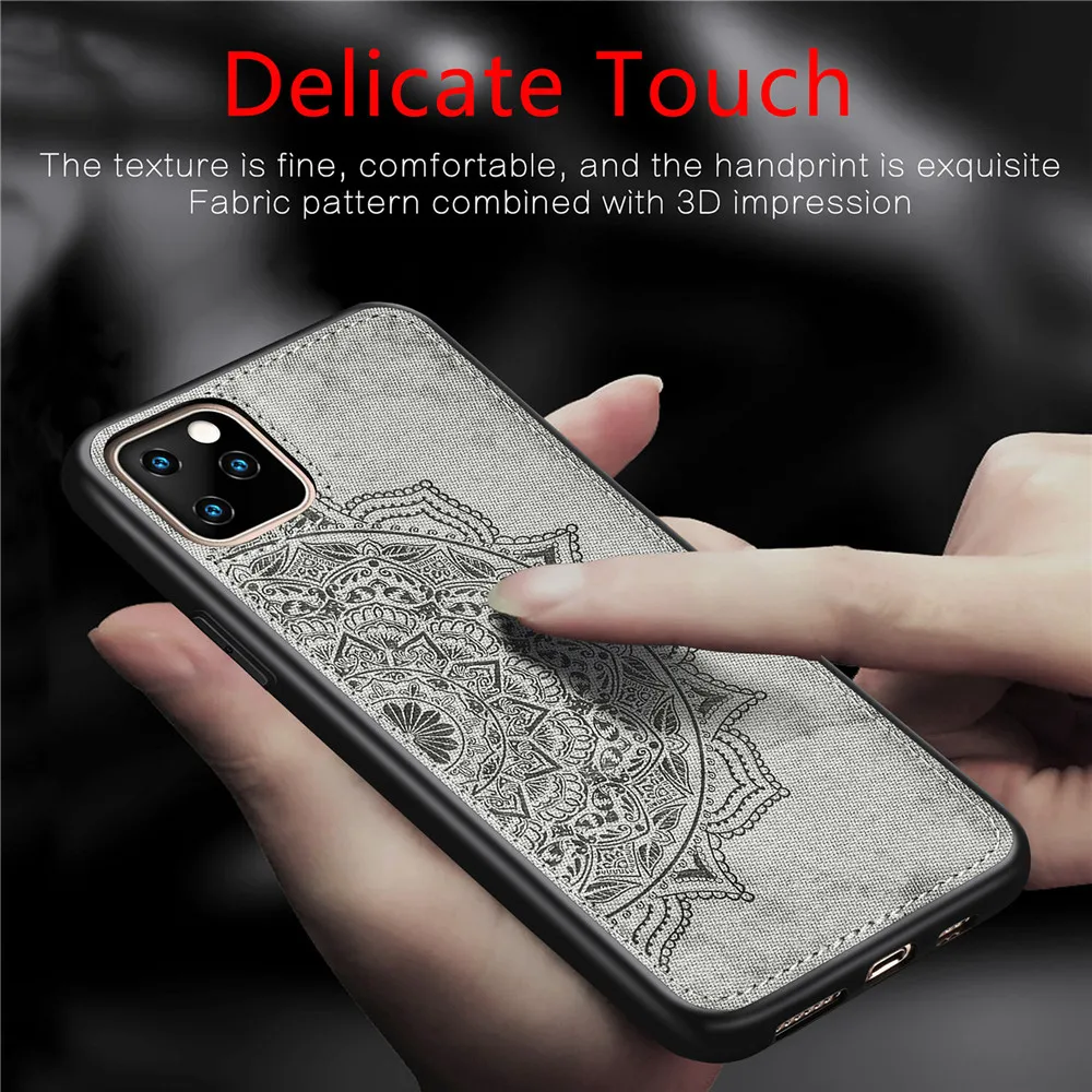 Чехлы для телефонов iPhone 12, 11 Pro, XS Max, 12 Mini, X, XS, XR, 6S, 7, 8 Plus, SE 2020, противоударный тисненый тканевый чехол-накладка с рисунком мандалы