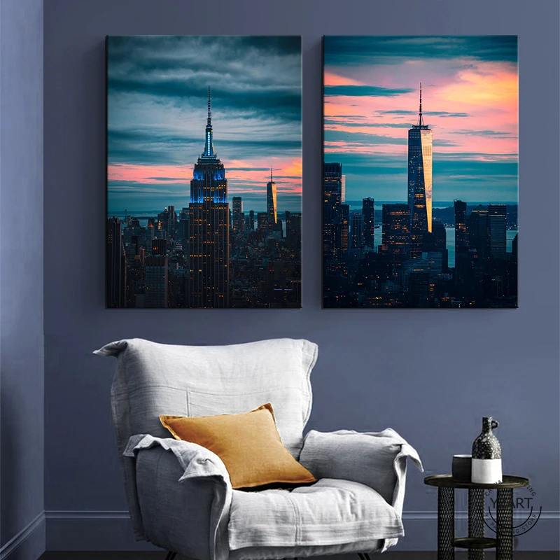 Цельнокроеное платье HD Эмпайр-Стейт-Билдинг картина Печать на холсте город и закат пейзаж настенная живопись для Декор в гостиную
