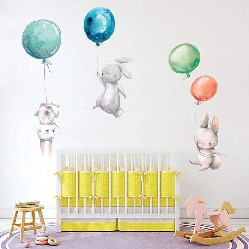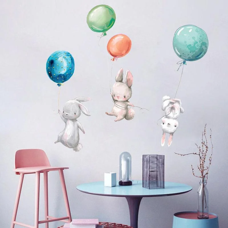 Акварельные Мультяшные наклейки на стену с милым Кроликом, детские наклейки на стену в детскую для детской комнаты, украшение интерьера гостиной