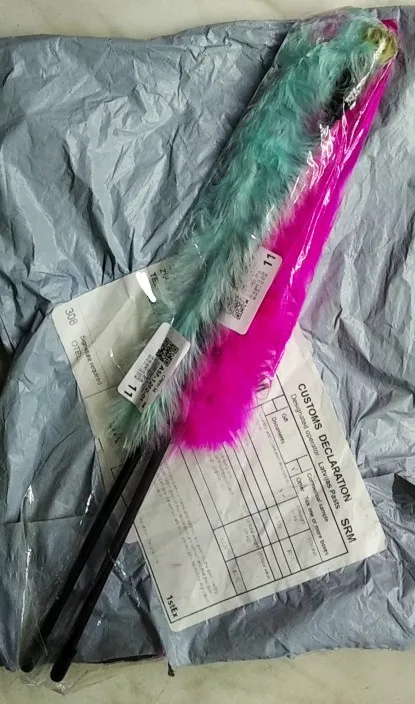Товар получен через 18 дней с момента заказа. Каждая палочка упакована в своем пакетике. Описанию соответствуют, пришли целыми, с колокольчиками. Единственное что не понравилось - очень сильно облязят пушистые части. Пух сам сыпется и не очень густой - за это минус 1 звезда.