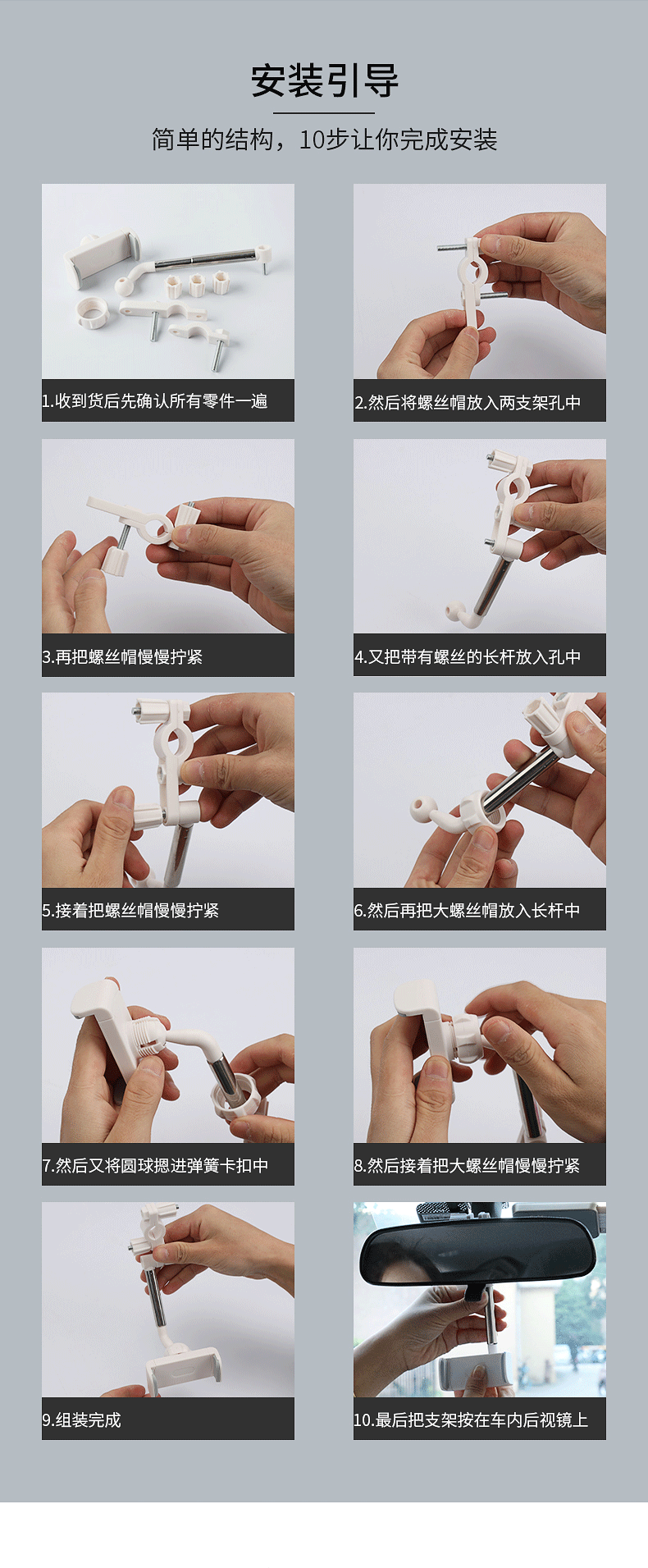 Особенность:1. Изготовлен из нового абс + металла, он экологически чистый и долговечный2. Подходит для большинства моделей мобильный телефон3. Он может поворачиваться на 360 градусов и свободно регулировать различные углы обзора.4. Конструкция пряжки используется для быстрой разборки и установки.5.С площадью контакта мобильный телефон с пеной (или мягким пластиком),Эффективно защищают любовную машину от царапин.Спецификация:Материал: ABSЗажим подходит для телефона: 4,0-6,1 дюймовПодходящие модели автомобилей: Подходит для 99% моделей автомобилейМесто установки: автомобильное зеркало заднего вида