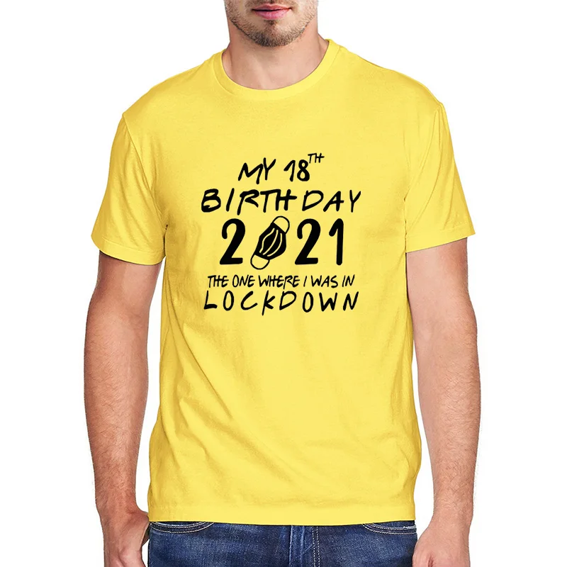 Забавная Мужская футболка my 18th birthday 2021 the one where in lockdown, хлопковая футболка, белая, унисекс, уличная футболка, Топы, подарки