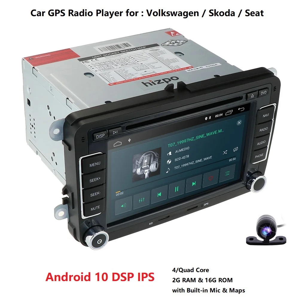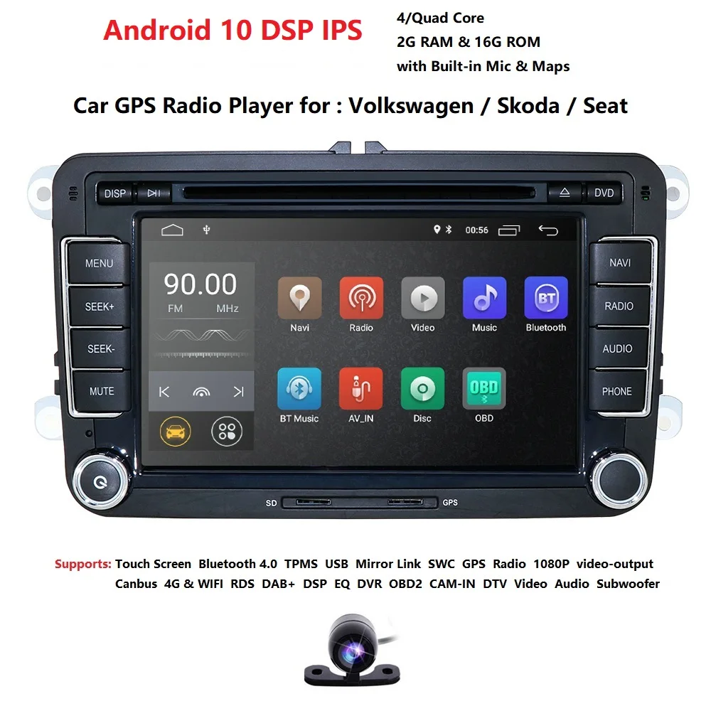 Автомобильный DVD-проигрыватель, плеер на Android 10, четырехъядерный процессор, 2 Гб ОЗУ, 16 Гб ПЗУ, для Volkswagen Passat CC Polo GOLF 5 6 Touran EOS T5 Sharan Tiguan, GPS Радио bt, типоразмер 2DIN