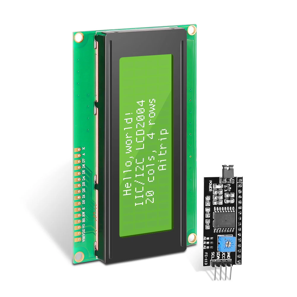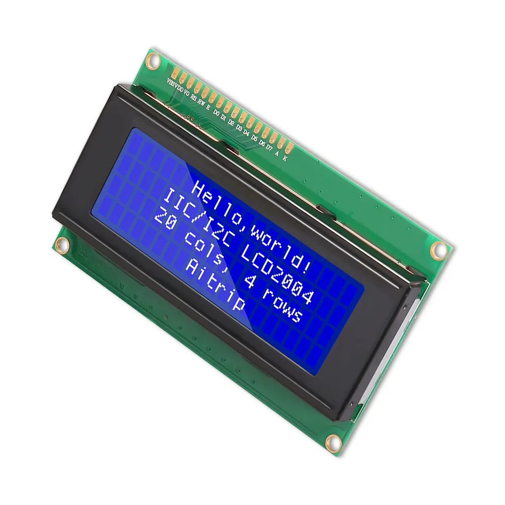 Компоненты: синий 20x4 2004 ЖК-дисплей + I2C последовательный интерфейс рюкзак; 2004 ЖК-экран может отображать 4 линии x 20 символов со встроенным промышленным стандартом HD44780 эквивалентный ЖК-контроллер.