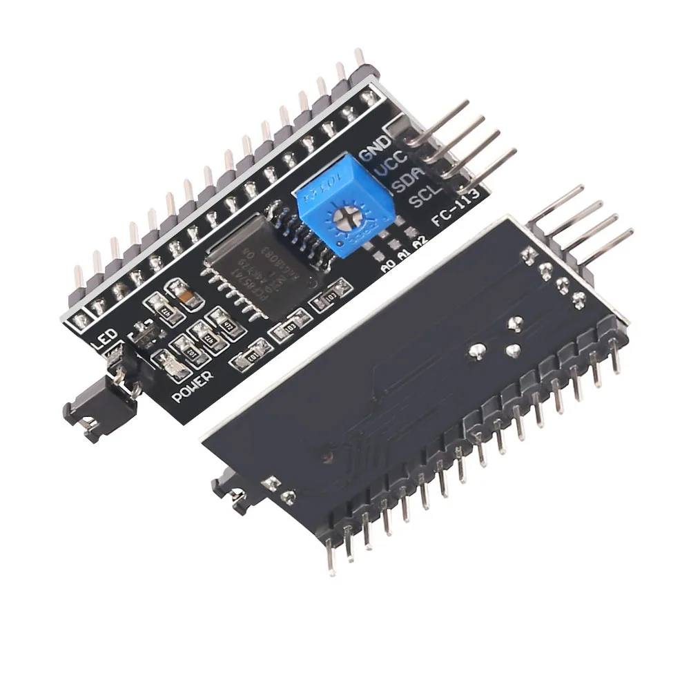 Адрес по умолчанию: 0x27 для чипа PCF8574T; 0x3F для чипа PCF8574AT; Проверьте, какой чип у вас есть на интерфейсе i2c. (Прежде чем загрузить код на панель управления, загрузите LiquidCrystal_I2C library)