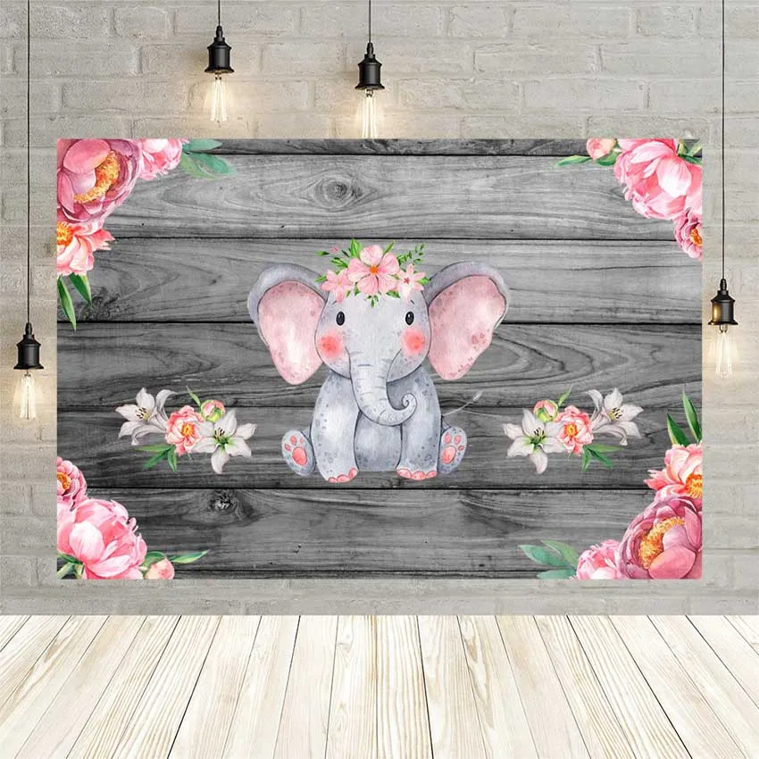Avezano фон для фотосъемки с изображением слона для детского праздника розовые цветы серая деревянная доска Декор для дня рождения для девочек реквизит для фотостудии