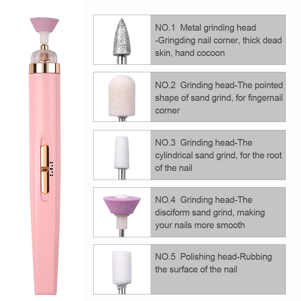 Электрическая дрель для ногтей, перезаряжаемая по USB, профессиональное устройство для удаления УФ-геля со светодиодной подсветкой, шлифовальный аппарат для маникюра, педикюрная дрель для ногтей