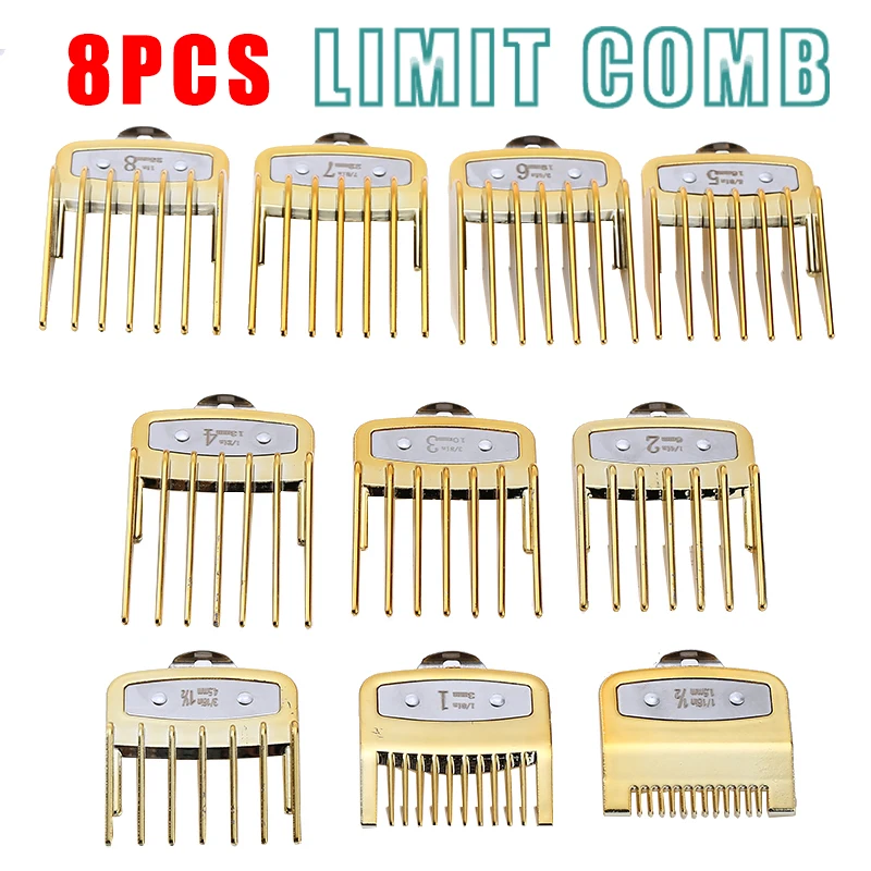 8 шт./компл., Золотая машинка для стрижки волос, ограничительная расческа, направляющая защита, насадка для волос Wahl, триммер для стрижки волос, расческа для волос
