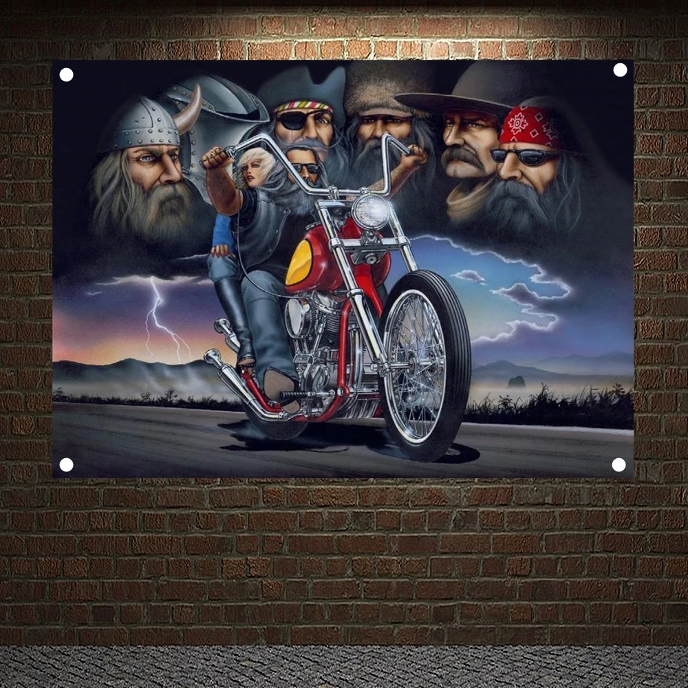 Ретро мотоциклистов дорога дневной свет баннеры флаг настенное искусство Американский плакат Гараж холст живопись Паб Бар домашний декор стен