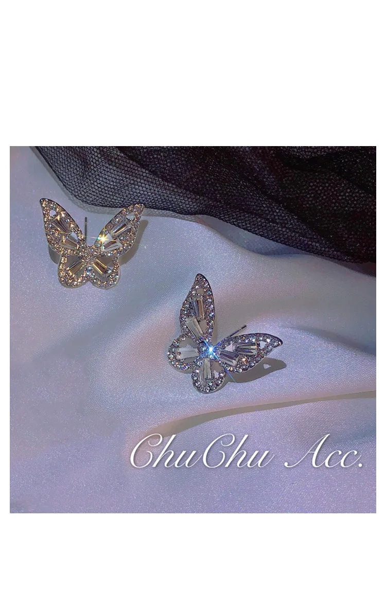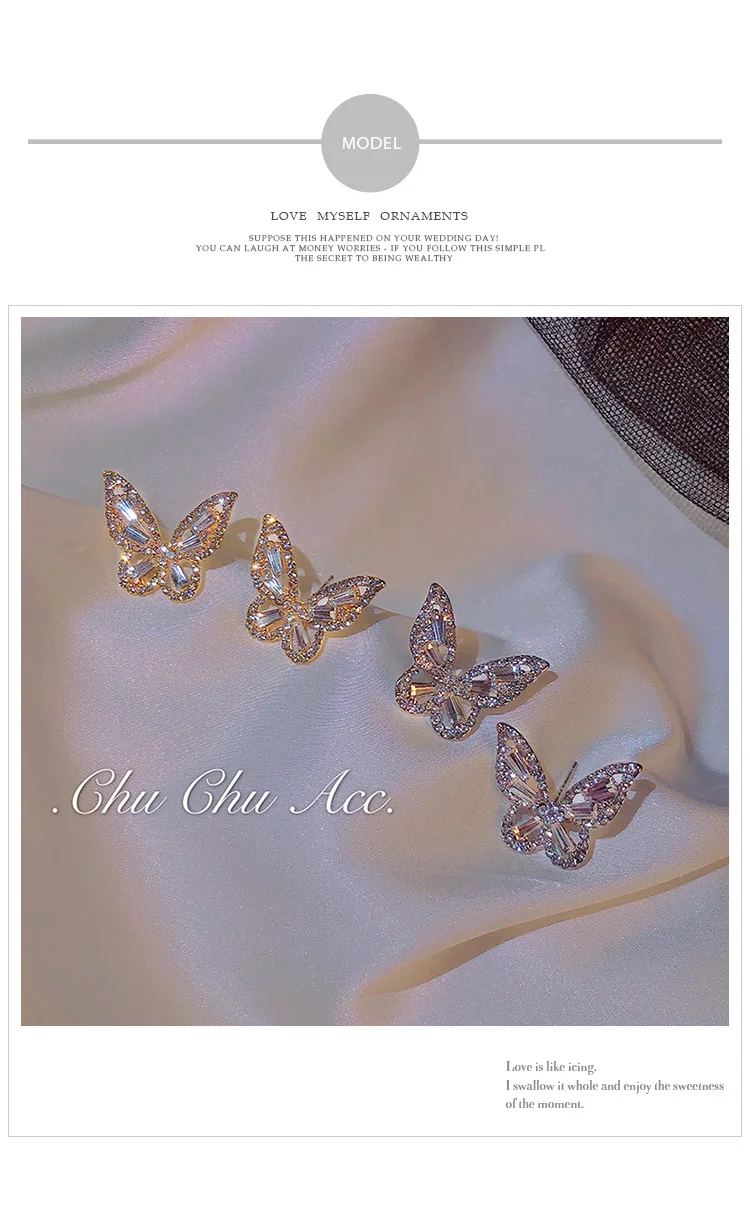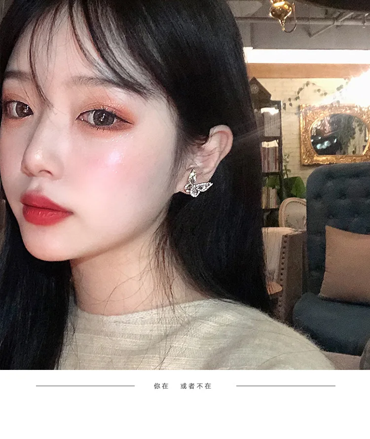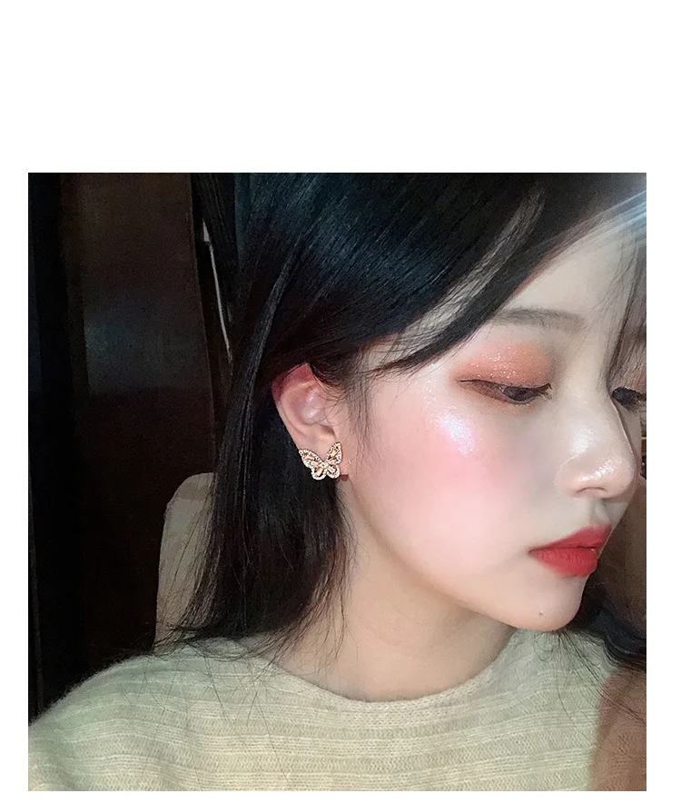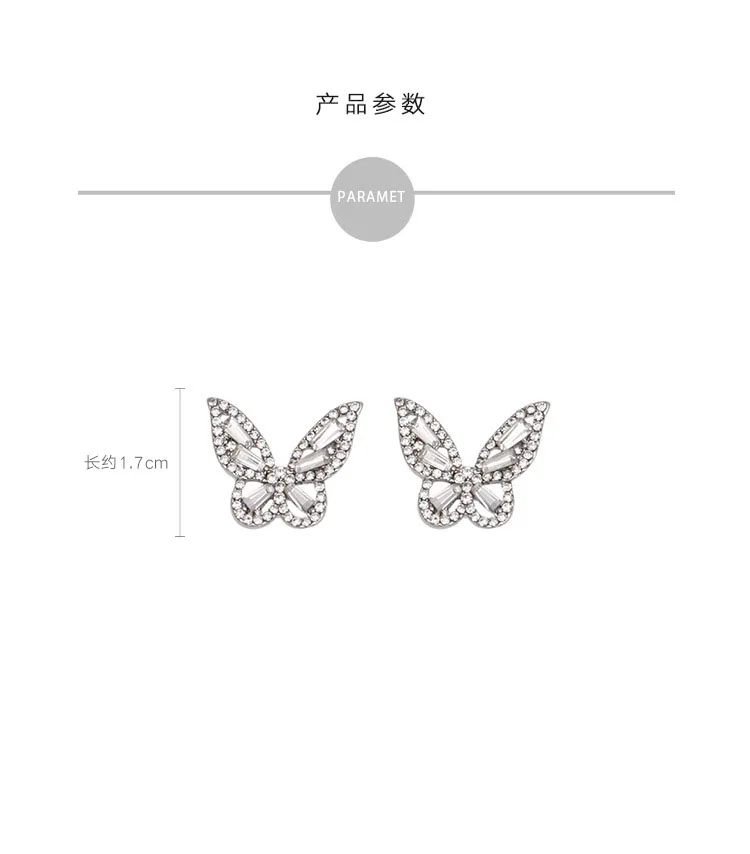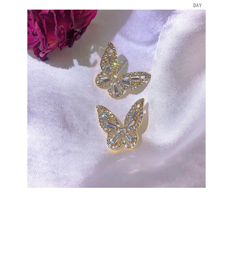 Серьги-гвоздики женские в стиле панк, с бабочками и кристаллами, 2021