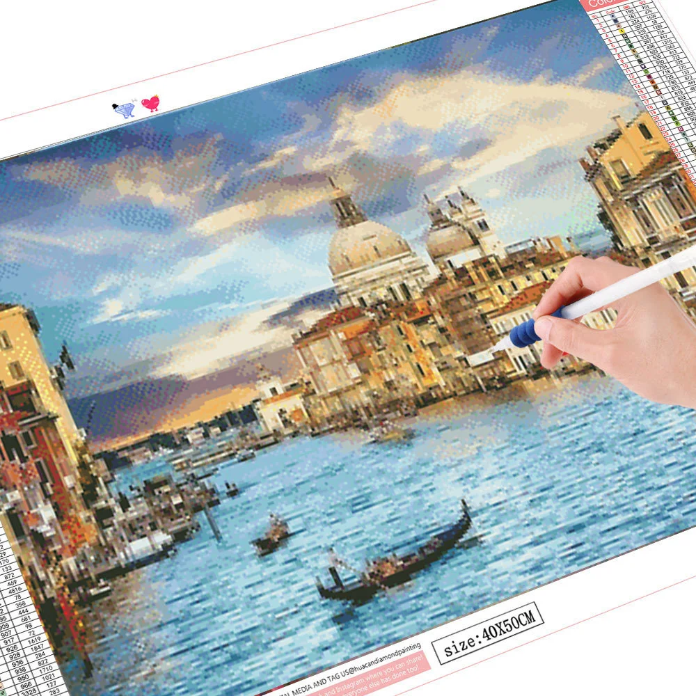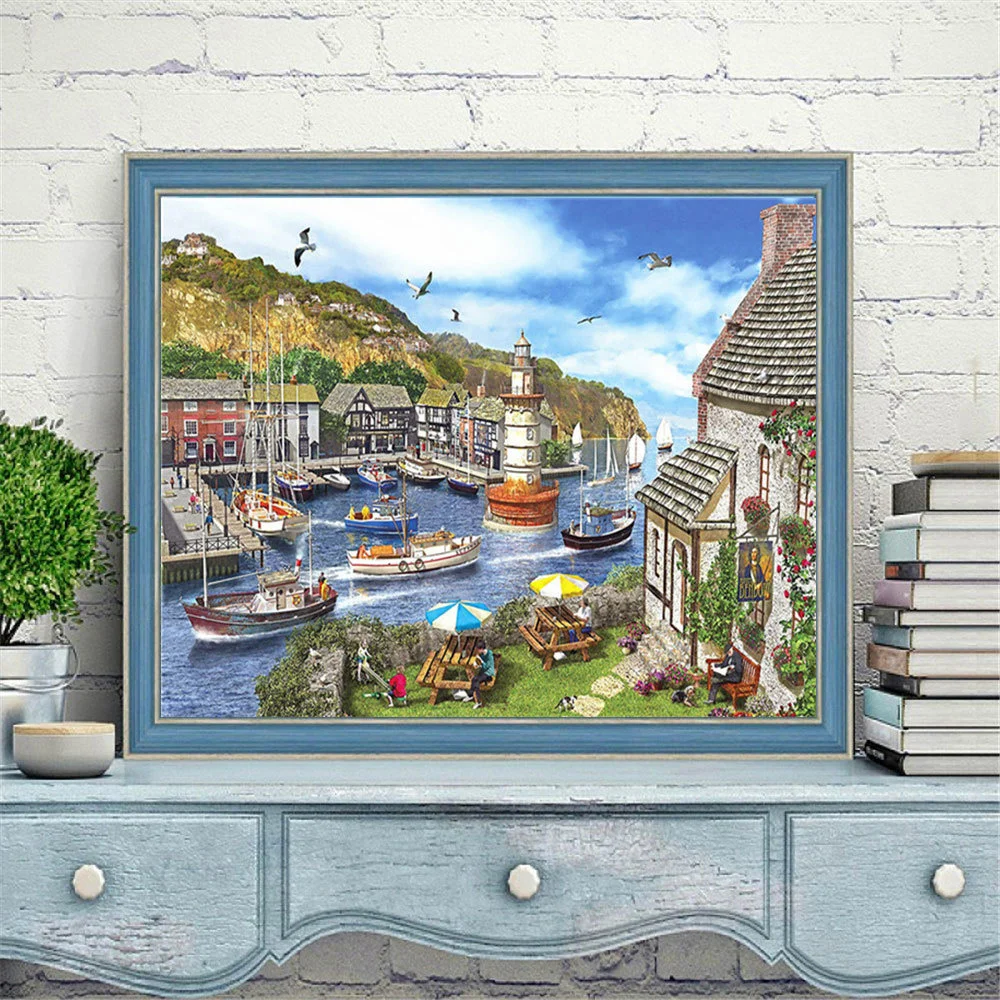 HUACAN 5d алмазная живопись город Сделай Сам мозаика Ландшафтные камни в форме ромба сверла вышивка Дом стразами море домашний декор рукоделие