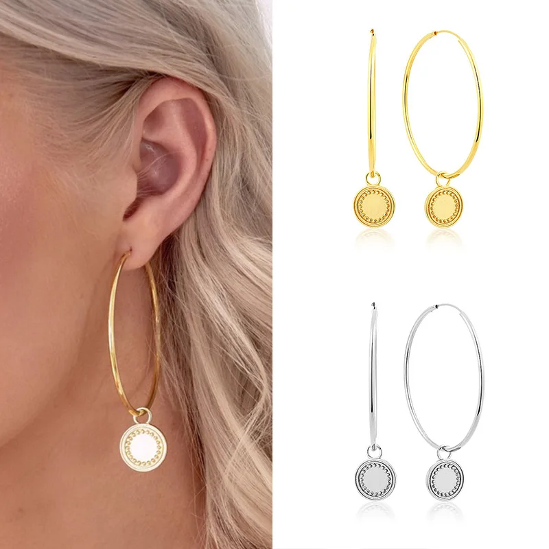 Серьги-кольца женские из серебра 925 пробы, большие круглые, простой: золото, серебро