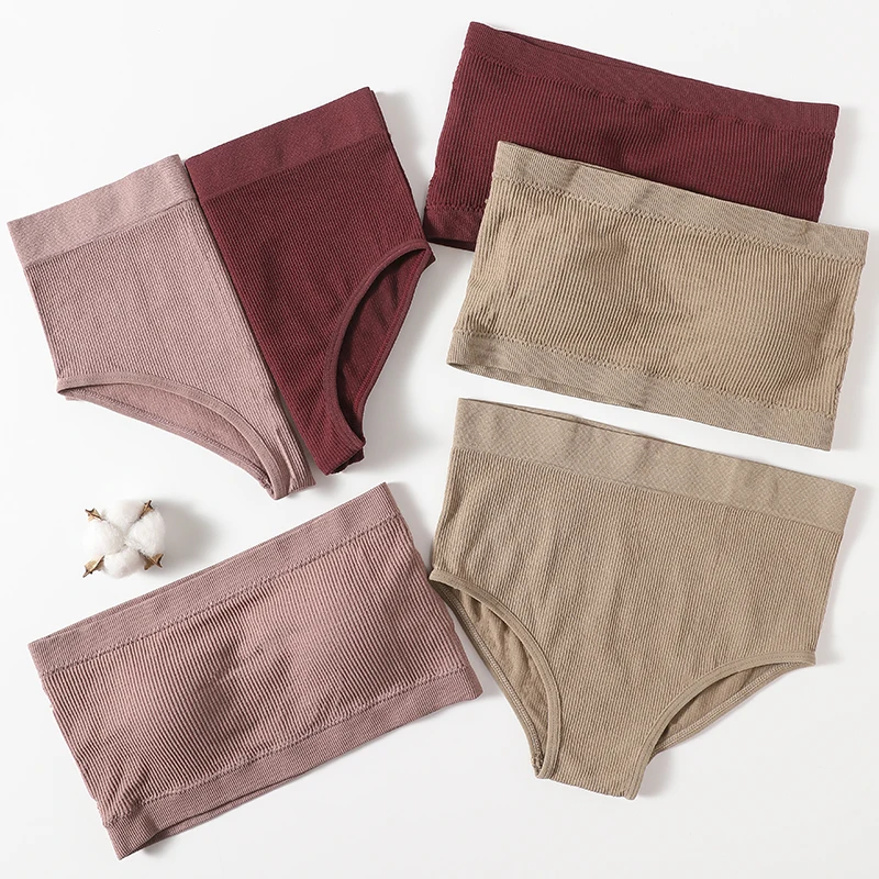 Комплект женского нижнего белья, бюстгальтер без бретелек и трусики, пикантный бесшовный укороченный топ без рукавов, трусы с завышенной талией