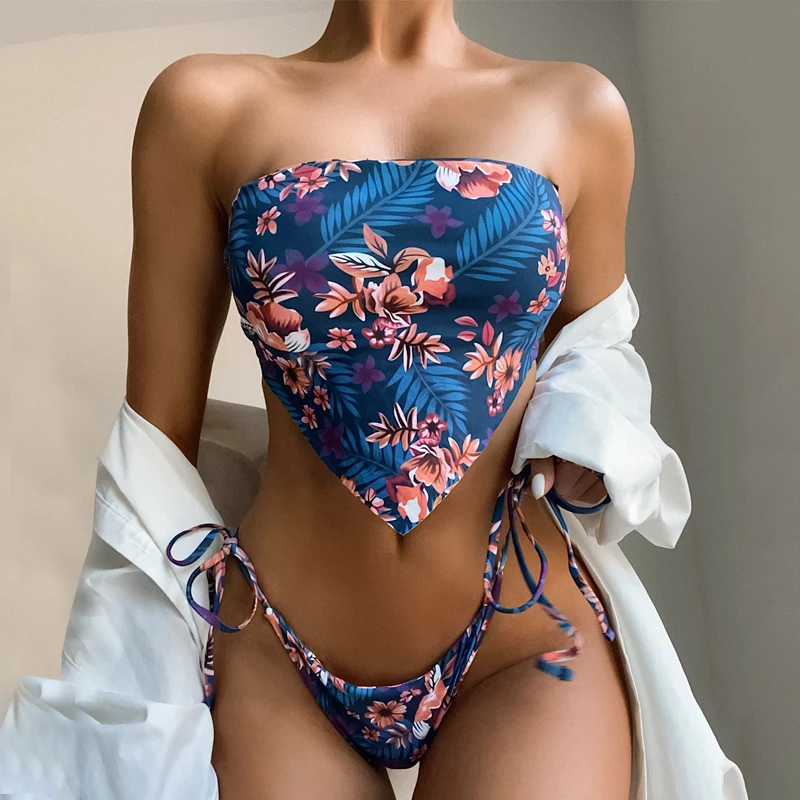 Купальник-бандо, женский купальный костюм, бикини на шнуровке 2021,...