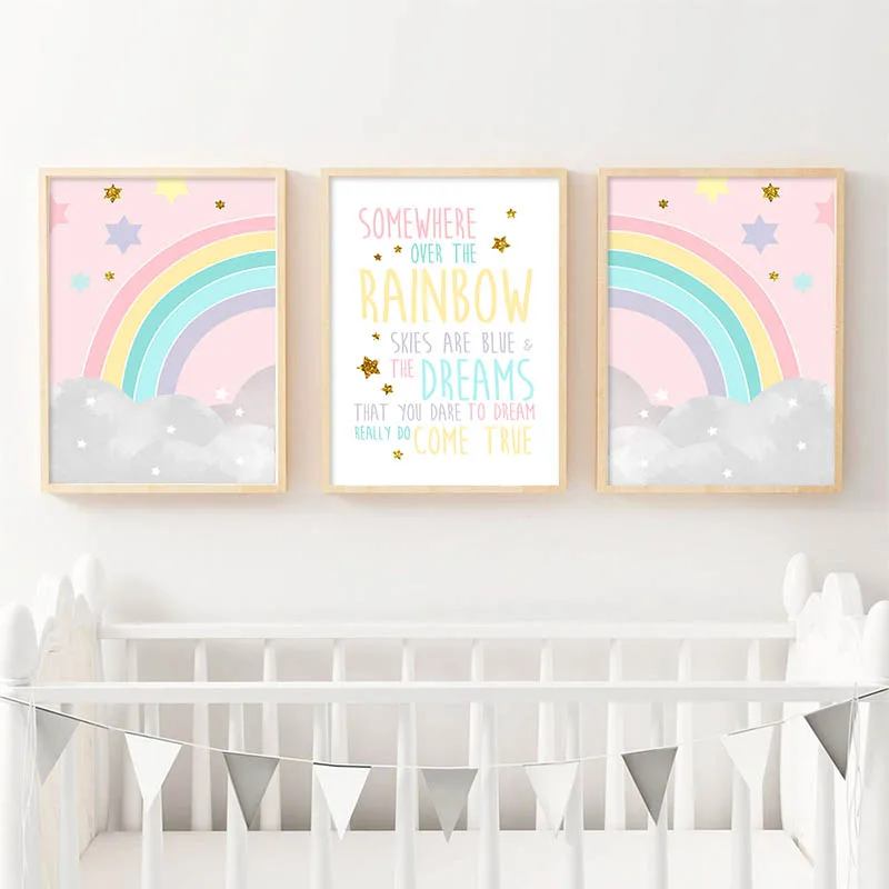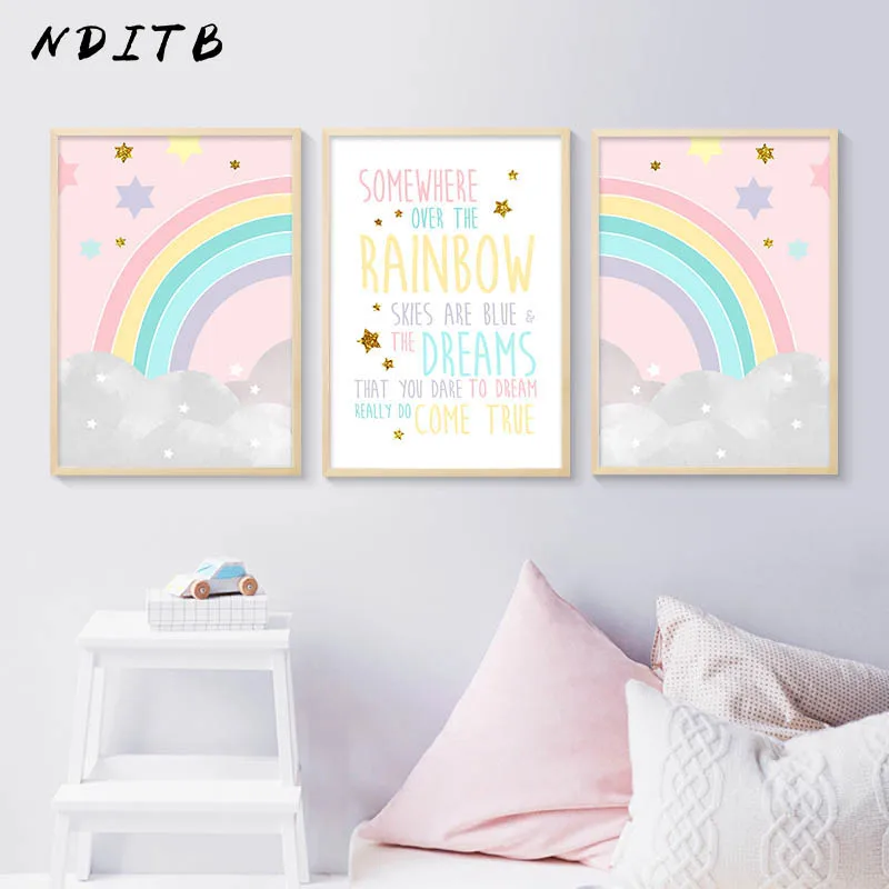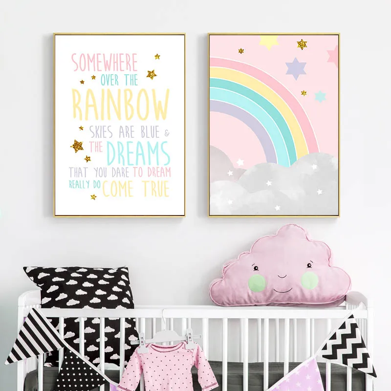 Мультяшный Радужный холст настенная печать картина в скандинавском стиле детская комната простота цитаты Плакат Детская спальня декоративная картина