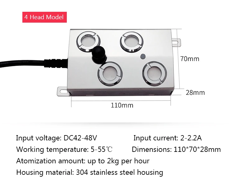 Примечание: атомайзер может быть подключен только к 45-48 В постоянного тока. Он должен использоваться с импульсным источником питания 400 Вт 48 В. Запрещено напрямую подключаться к бытовой мощности 220 в!