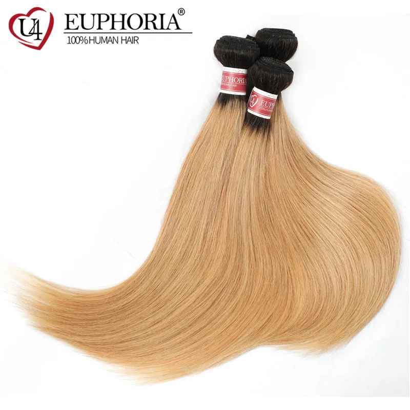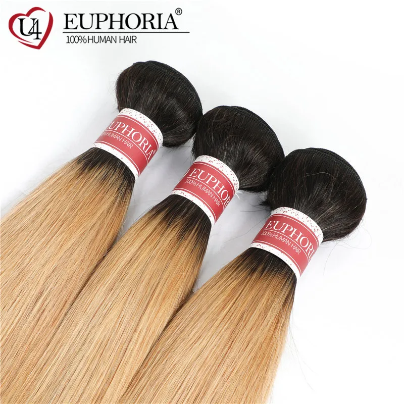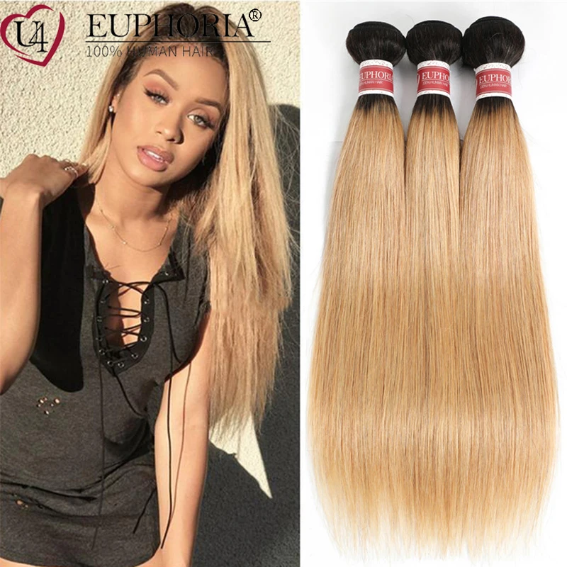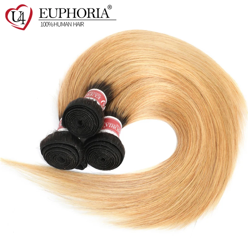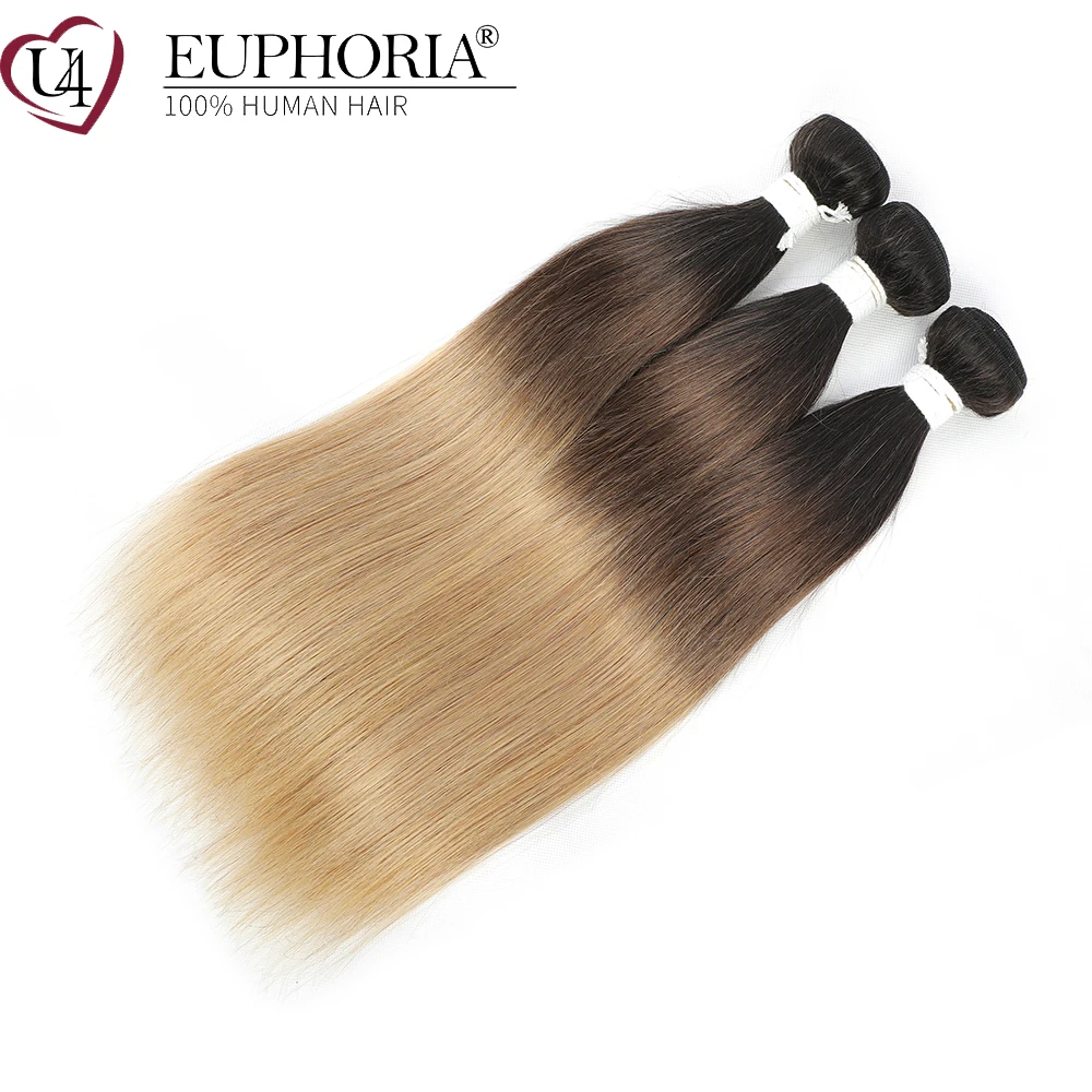 Прямые человеческие волосы, 34 пряди, Омбре, блонд, 27, бразильские, не-Реми, волосы, пряди для наращивания, коричневые, для женщин, EUPHORIA