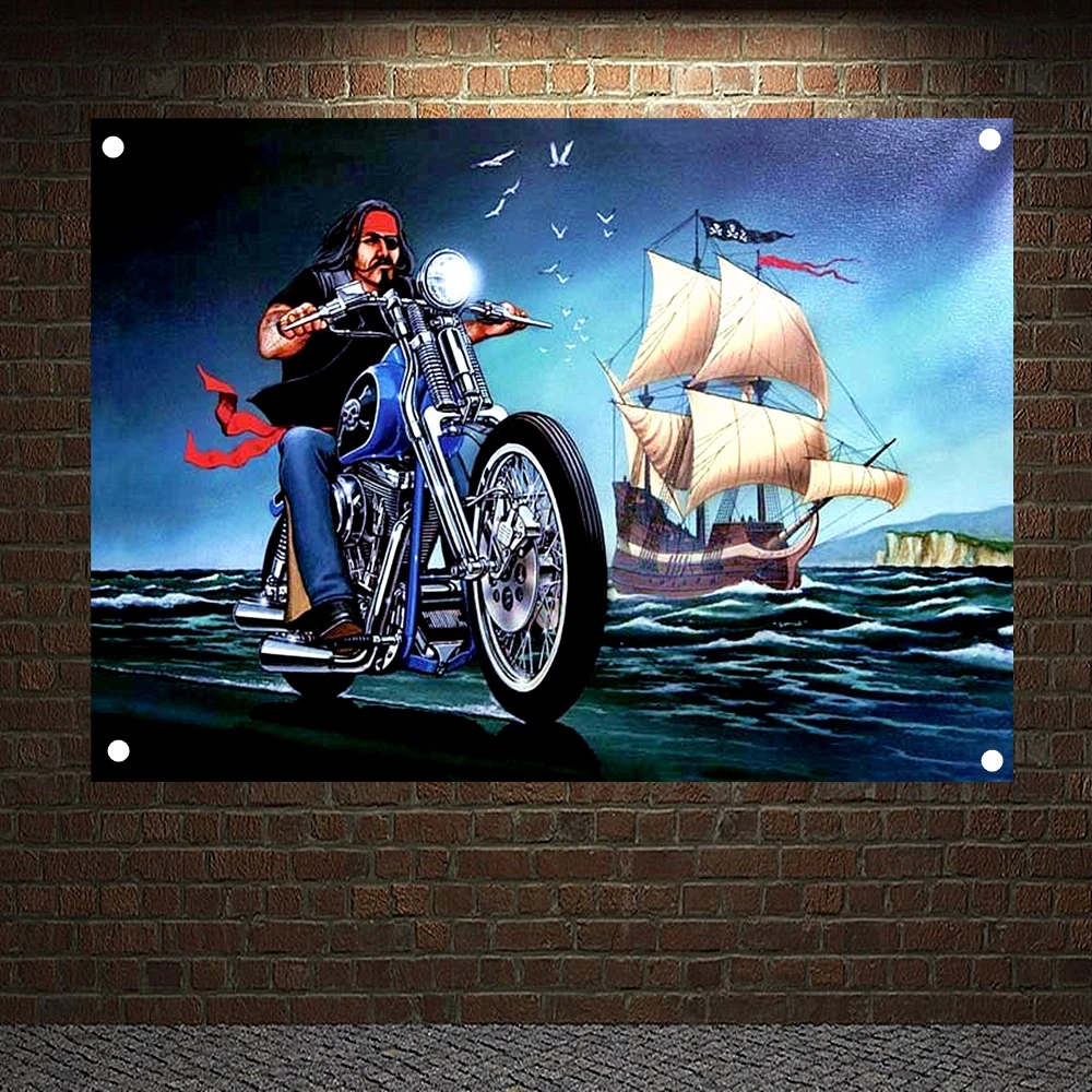 Гобелен Easy Rider для мотоциклистов, холщовая картина для кафе, гонщиков, мотористов, баннеры, флаг для паба, клуба, домашний Настенный декор, моторный плакат