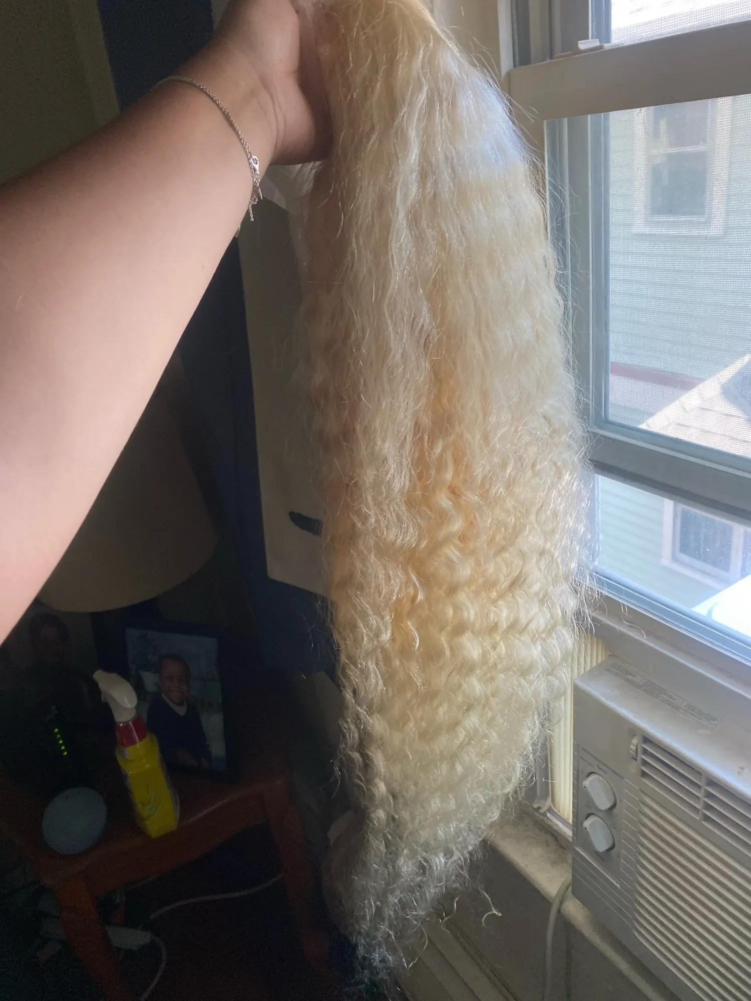 Обычно я в ужасе покупаю волосы онлайн, потому что вы никогда не знаете, что вы собираетесь получить, но эти светлые волосы абсолютно красивые. Супер мягкий, без запаха, люблю локоны, отбеливал концы и узлы и все еще очень мягкий, общение было потрясающим, нужно было изменить адрес в последнюю минуту, и они все еще сделали это, потому что я обязательно буду заказывать снова и иметь в виду. Я люблю этот парик, я ругаюсь!