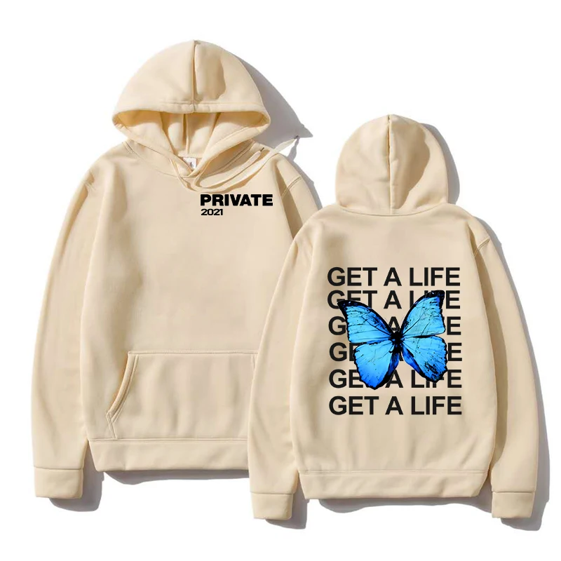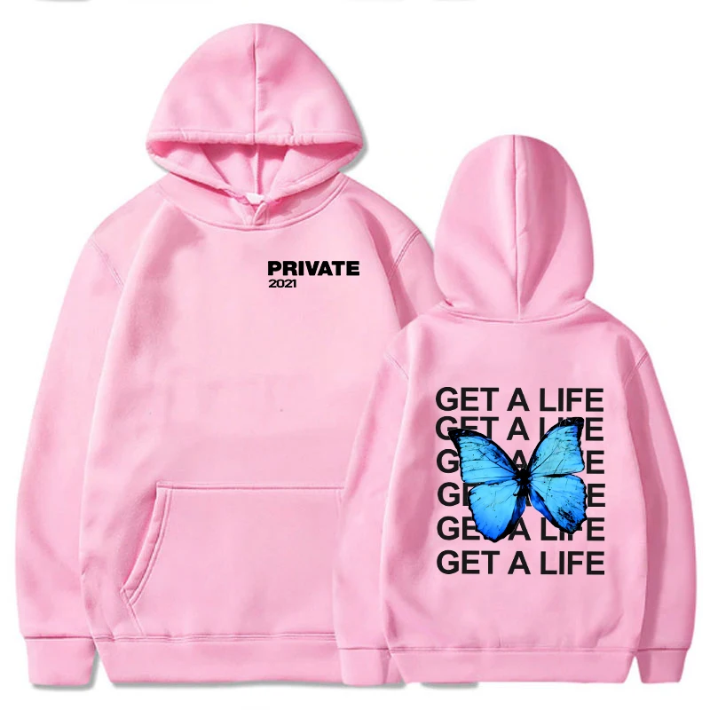 Худи с принтом бабочки и надписью Get A Life, свитшоты, женские толстовки оверсайз, зимняя уличная одежда с длинным рукавом, мужские толстовки, 2021