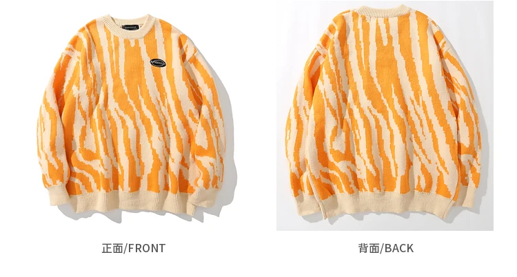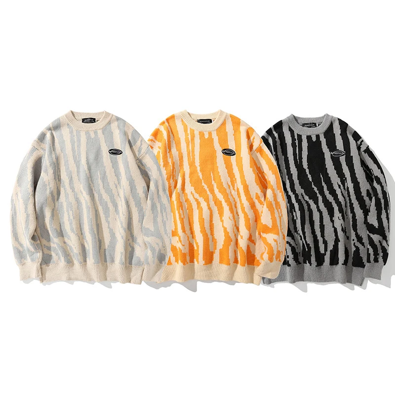 Мужской свитер в стиле хип-хоп, уличная одежда, мужской вязаный свитер в стиле Харадзюку, мужской свитер с узором зебры, весенний пуловер в стиле ретро, свободный винтажный хлопковый свитер, 2022