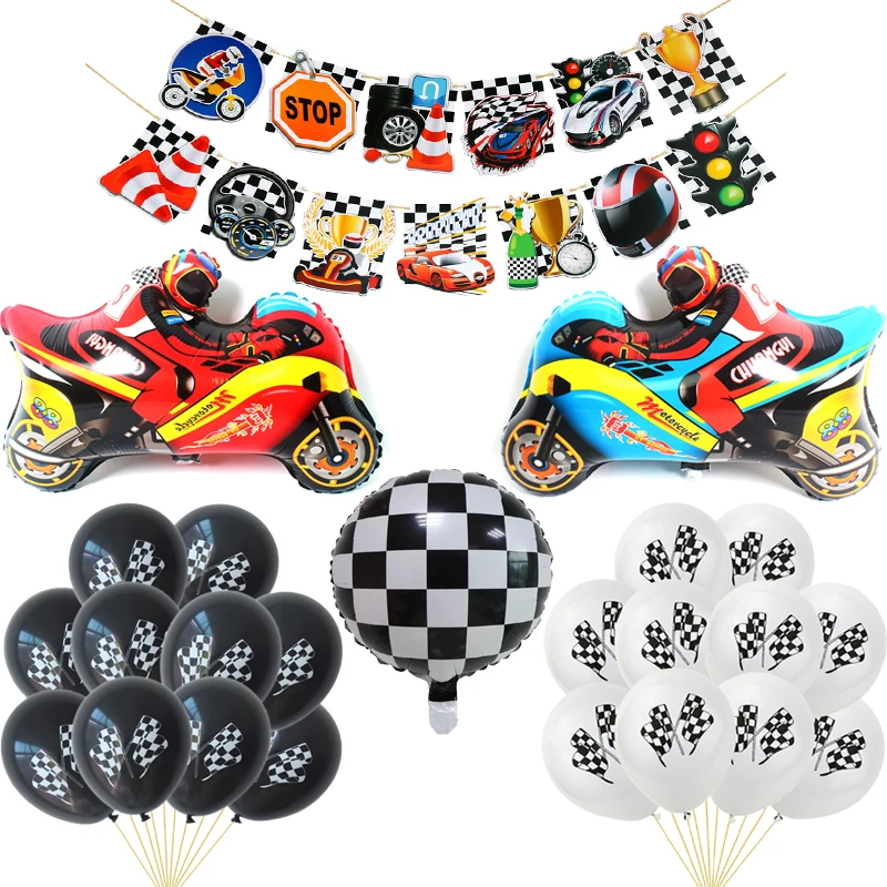 Латексные воздушные шары в черно-белую клетку, гоночная машина, флаг для мотогонок, украшение для дня рождения, для мальчиков и девочек