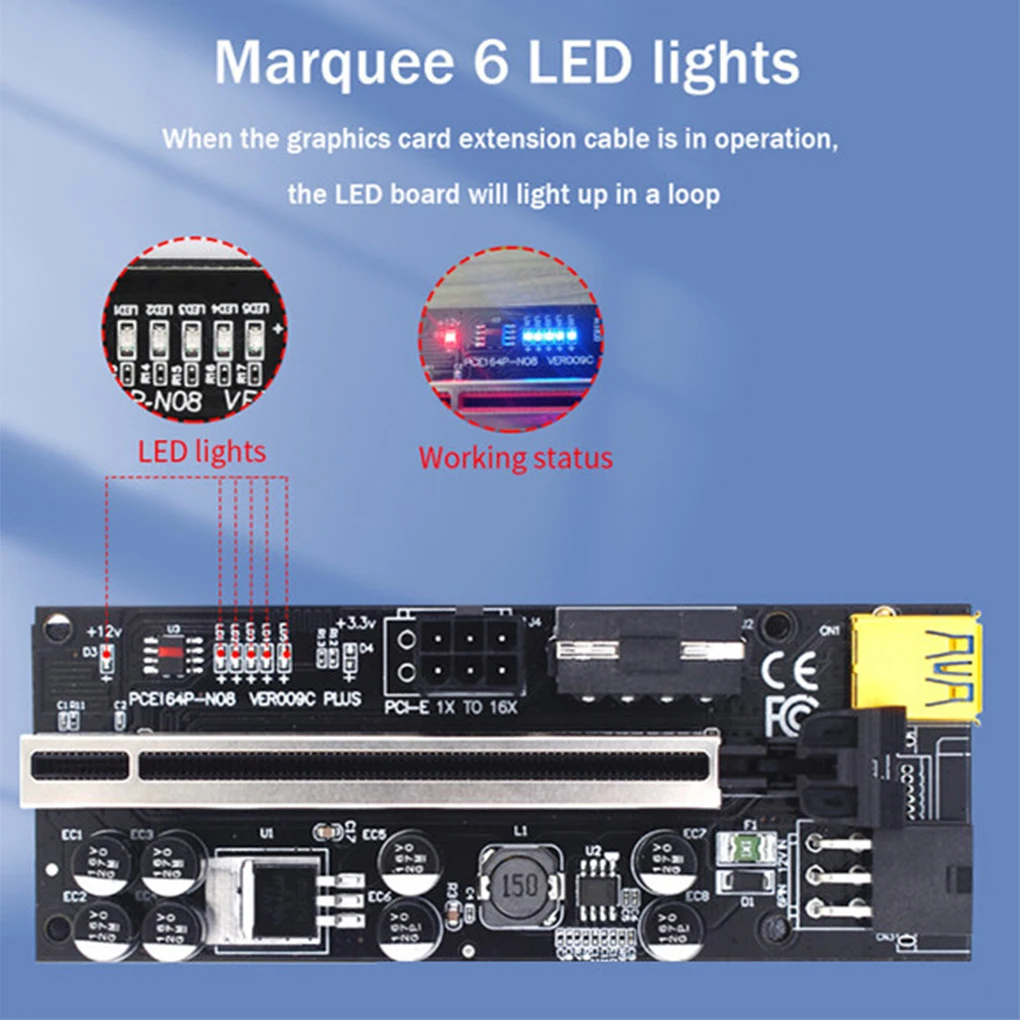 Этот расширитель PCI-E GPU отличается позолоченными контактами и имеет хорошую производительность, его можно использовать в течение длительного времени.Есть 4 конденсатора на этой плате PCI-E 1X to 16X, чтобы сделать блок питания стабильным и безопасным.Адаптер PCI-E GPU отличается стабильным сопротивлением и имеет 3 светодиодных индикатора для отображения рабочего состояния.Плата расширения графического процессора имеет интерфейс 6pin, вы можете легко подключить и интерфейс 6pin также может уменьшить нагрузку на материнскую плату.Плата переходника PCI-E имеет фиксированную пряжку, которая может зафиксировать графическую карту, поэтому карта не будет легко упасть.Технические характеристики:Длина кабеля: 60 см.Интерфейс: PCI-E, USB 3,0, 6pin, 4pin.Цвет кабеля USB: красный, белый, синий.Размер платы: 13х4, 4 см.Примечание:Из–за разных компьютерных разрешений может быть небольшое цветовое искажение.Возможны незначительные погрешности из-за различных измерений вручную.Посылка включает в себя:6Х USB-кабель.6X 1x до 16x Удлинительный кабель.6X плата PCIE riser.6X Адаптерная плата PCIE.