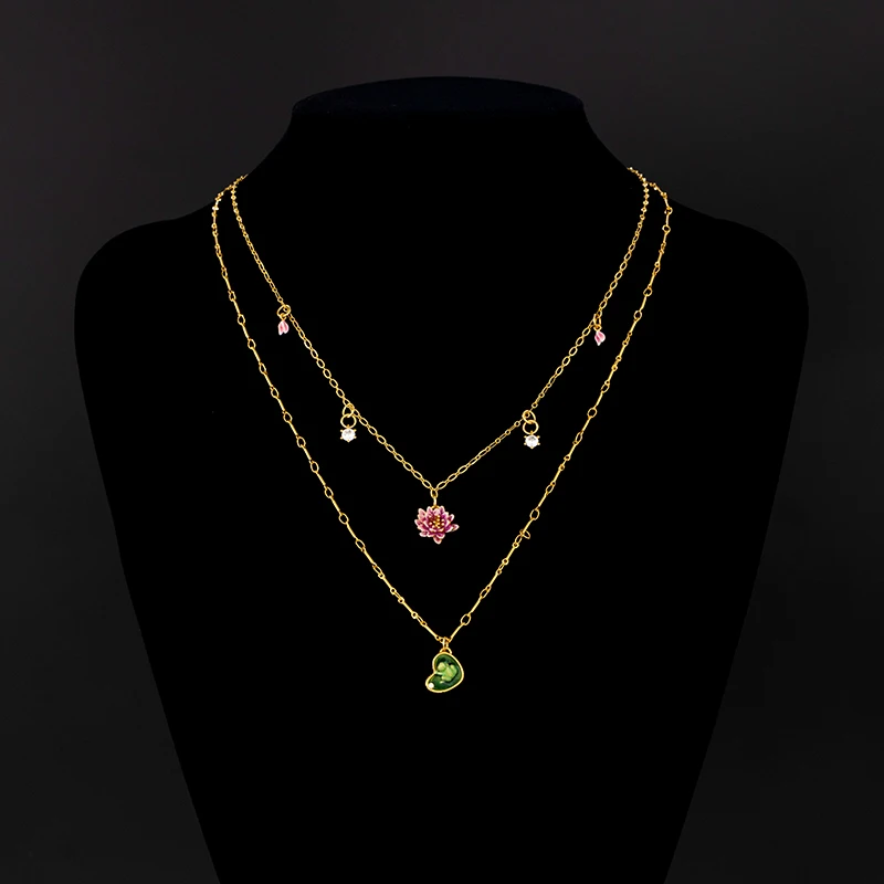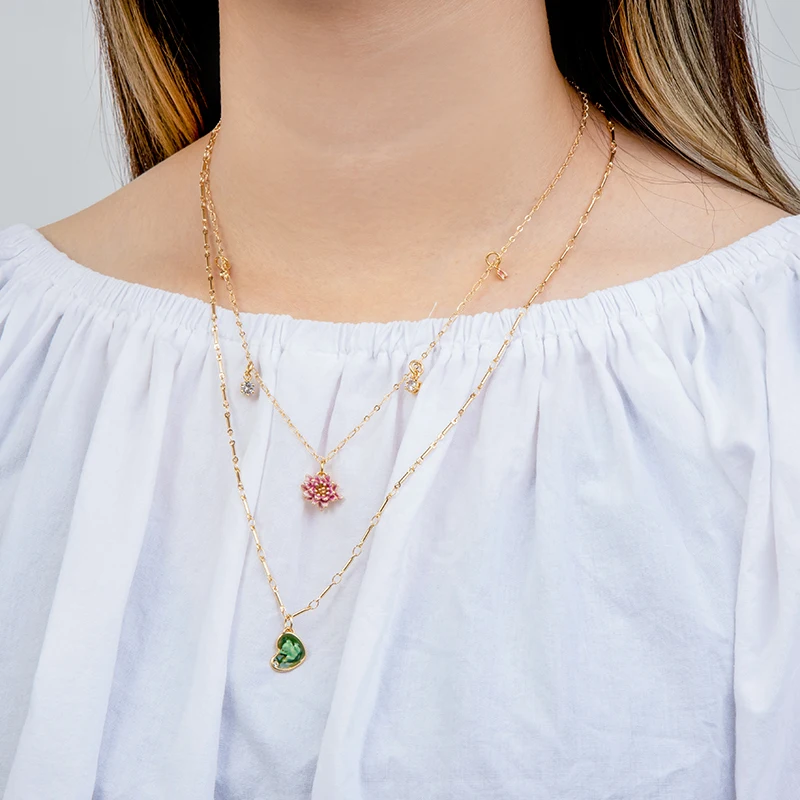 Ожерелье женское Jaeeyin, с эмалью, в виде лягушки, лотоса, со съемными лепестками, 2021