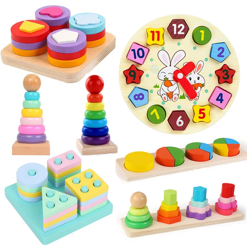 Деревянные игрушки Монтессори, строительные блоки, Обучающие Игрушки для раннего развития, цветная форма, детские игрушки-головоломки для мальчиков и девочек 2 года +
