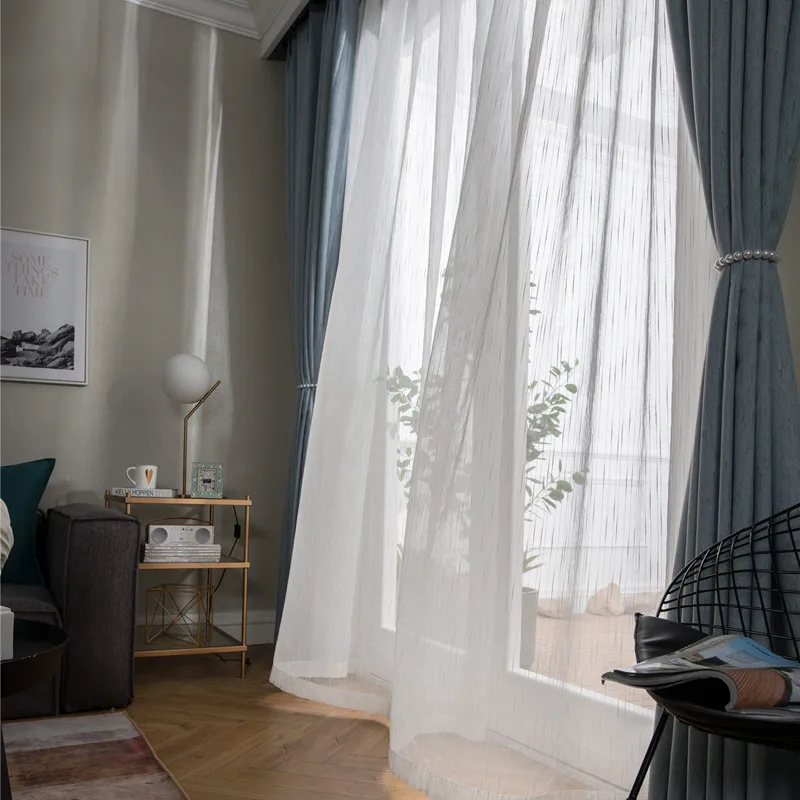 Затемняющие шторы для гостиной, спальни, с узором в горошек, термоизолированные белые полосатые прозрачные раздвижные стеклянные двери