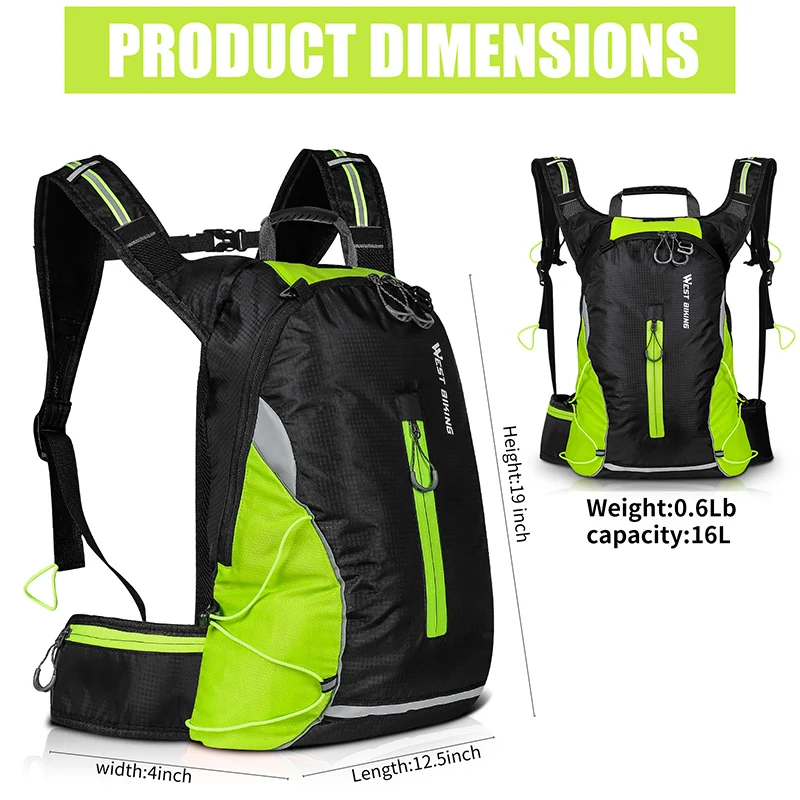 Сумка велосипедная WEST BIKING, водонепроницаемая, Ультралегкая Светоотражающая, для пеших прогулок, путешествий, спорта на открытом воздухе, для альпинизма, 10-16 л